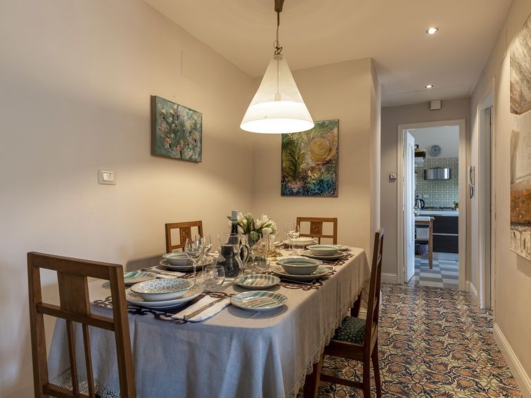 "Ausilia", apartamento de 3 estancias 105 m2 en el 3° piso. Con mobiliario confortable y de buen gusto: salón con 1 sofá-cama, 1 cama-nido y TV (pantalla plana). Salida al balcón. 1 dorm. doble con aire acondicionado y bomba de calor, caliente. Salida al balcón. 1 dorm. doble con aire acondicionado y bomba de calor, caliente. Salida al balcón. Cocina (4 fogones, horno, lavavajillas, tostadora, hervidor de agua eléctrico, microondas, congelador, cafetera eléctrica) con mesa de comedor, TV (pantalla plana). Salida a la terraza. Baño/bidet/WC, ducha/bidet/WC. Calefacción, calefacción de gas, aire caliente. Calefacción disponible desde el 22.11. al 23.03. 2 balcones 1 m2, terraza 12 m2. Muebles de terraza. Vista parcial al mar y al ciudad. El alojamiento dispone de: lavadora, plancha, trona, cuna hasta 2 años, secador de pelo. Internet (Wifi, gratis). Plaza de aparcamiento (1 coche). CIR:19087051C223360