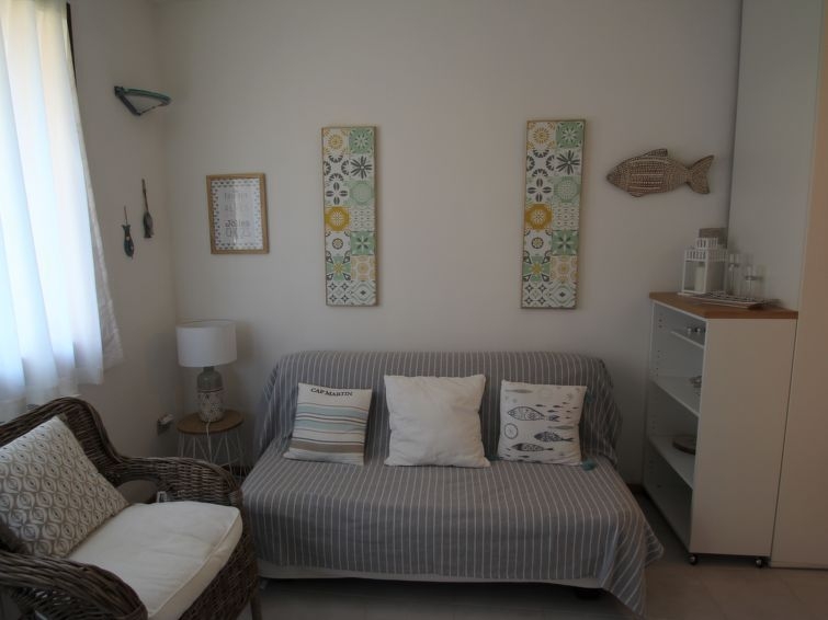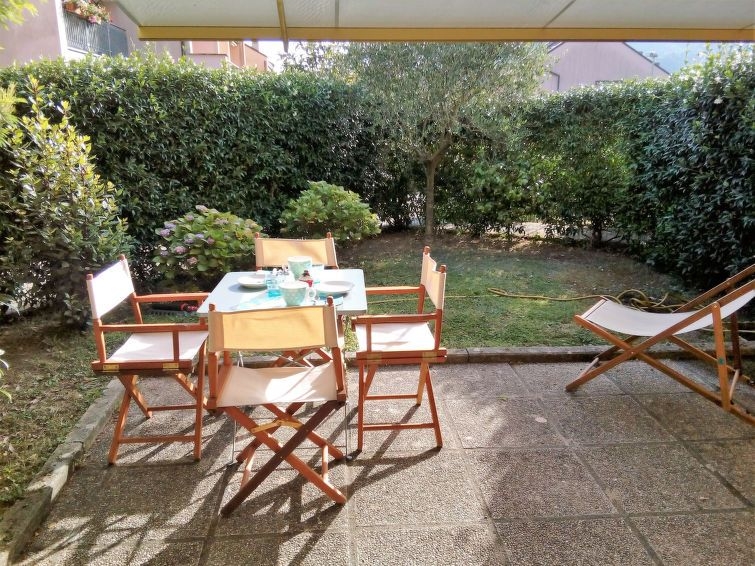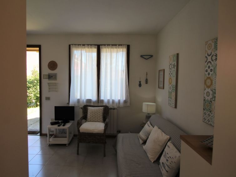 "Patrizia", apartamento de 2 estancias 45 m2, en la planta baja. Con mobiliario funcional y agradable: salón-comedor con 1 sofá-cama doble y TV. Salida al jardín. 1 dorm. doble. Salida a la terraza-jardín. Rincón-cocina (4 fogones, microondas, congelador). Ducha/bidet/WC. Calefacción de gas (extra). Calefacción disponible desde el 15.10. al 15.04. Terraza-jardín 8 m2, jardín 35 m2. Muebles de terraza. El alojamiento dispone de: lavadora, plancha, secador de pelo. Plaza de aparcamiento. 011021-LT-0010