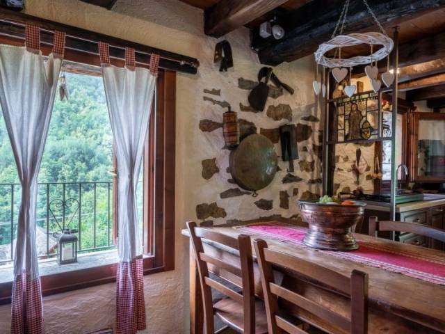 Casa pareada 2 estancias 60 m2 en 2 plantas. Con mobiliario confortable y rústico: 1 dorm. doble, abierto. Ducha/bidet/WC. Calefacción de gas, calefacción de leña (extra). Calefacción disponible desde el 15.10. al 15.04. Planta superior: salón-comedor con 1 sofá-cama doble, chiminea nórdica y TV. Rincón-cocina (4 fogones, horno, cafetera eléctrica). Suelo de madera. Balcón. Muebles de balcón. Vista a las montañas. El alojamiento dispone de: secador de pelo. A tener en cuenta: 2 mascotas / perros. Entrada privada. CIR:10301200001