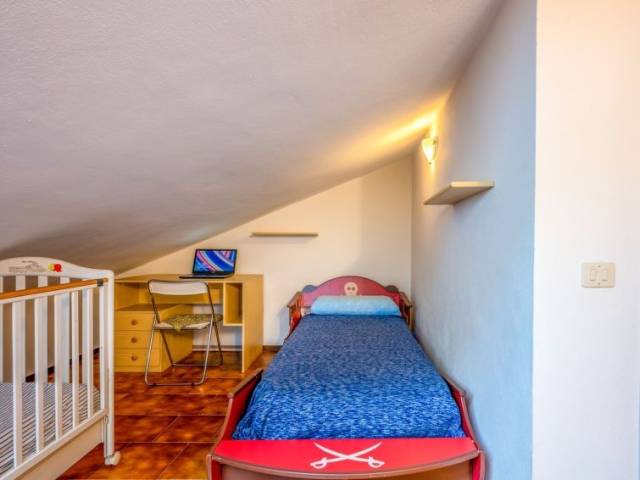 "Spaghetti & Cappuccino Beach Villa", casa 4 estancias 110 m2 en 2 plantas. Salón-comedor con chimenea (sólo con función decorativa), TV y aire acondicionado. Salida al jardín. 1 dorm. doble con 1 cama doble y aire acondicionado. Salida al jardín. Pequeña cocina (horno, lavavajillas, 4 fuegos, hervidor de agua eléctrico, microondas). Ducha/bidet/WC. Planta superior: (escalera de caracol) 1 dorm. doble, abuhardillado con 1 cama doble. 1 dorm. para niños, abuhardillado con 2 camas. WC separado. Calefacción de gas. Calefacción disponible desde el 15.10. al 15.04. Muebles de terraza, barbacoa. El alojamiento dispone de: lavadora, cuna, secador de pelo. Internet (Wifi, gratis). CIR:00311500016