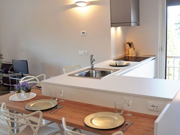 Apartamento de 2 estancias 50 m2 en el 2° piso. Completamente reformado en 2018, con mobiliario confortable y moderno: salón-comedor con 1 sofá-cama doble, TV satélite y persianas eléctricas. Salida a la terraza. 1 dorm. con 1 cama y TV. Rincón-cocina (horno, lavavajillas, 4 Placas de inducción, congelador, cafetera eléctrica). Ducha/bidet/WC. Calefacción (extra). Calefacción disponible desde el 15.10. al 15.04. Suelo de parquet. Terraza 8 m2, cubierta. Muebles de terraza. Vista al lago y al jardín. El alojamiento dispone de: lavadora, caja fuerte. Plaza de aparcamiento (cubierto). CIR: 012114-CNI-00013
