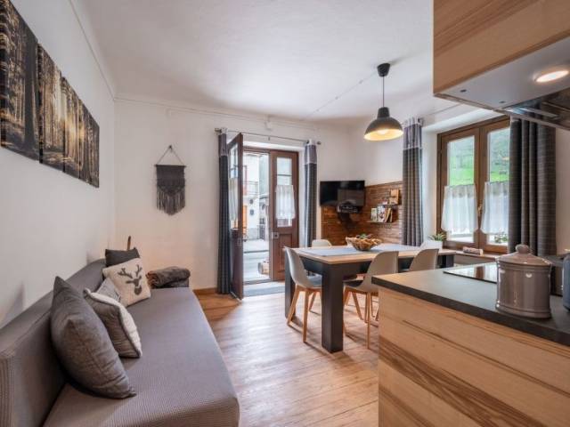 "Il Fior di Neve", apartamento de 2 estancias 40 m2, en la planta baja. Reformado, con mobiliario confortable y con mucha madera: salón-comedor con mesa de comedor y TV. 1 dorm. doble con 1 x 2 literas, 1 cama doble. Rincón-cocina (4 Placas de inducción, hervidor de agua eléctrico, microondas). Ducha/bidet/WC. Calefacción, calefacción de gas. Calefacción disponible desde el 15.10. al 15.04. Terraza-jardín pequeña. Muebles de balcón. El alojamiento dispone de: trona, cuna hasta 2 años, secador de pelo. Internet (Wifi, gratis). 1 mascota / perro. 00120200002