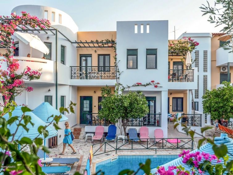 Aparthotel "Kastro Studios & Apartments", bonito, agradable de 3 plantas del año 2001, reformado en 2012. 31 apartamentos en la residencia. En el barrio de Myrtos, a 16 km del centro de Ierapetra, lugar tranquilo, soleado, a 500 m del mar, a 500 m de la playa. Comunitario: jardín grande, cuidado 2'000 m2 con flores y árboles, piscina rectangular (124 m2, 70 - 220 cm de profundidad, Disponible por temporada: 01.Abr. - 31.Oct.). Piscina para niños. En el inmueble: recepción, bar, sala de descanso con TV, Wifi, bañera de hidromasaje. Cambio de sábanas 2 vez por semana. Cambio de toallas 2 veces por semana. Limpieza 2 veces por semana. Aparcamiento junto a la casa. Tienda de comestibles, supermercado 400 m, restaurante 500 m, panadería 400 m, café 500 m, playa de arena "Myrtos" 500 m. Atracciones en los alrededores: Venetian Fortress Kales 15 km, Napoleon's House 15 km, Archaeological Collection of Ierapetra 16 km. A tener en cuenta: coche recomendable. Horario de recepción de 09:00-21:00 horas. Equipamiento para bebés a demanda (incluido). Grupos de jóvenes sólo bajo petición. A tener en cuenta: La foto corresponde a una de las viviendas. Se pueden reservar alojamientos adicionales.