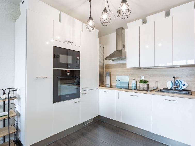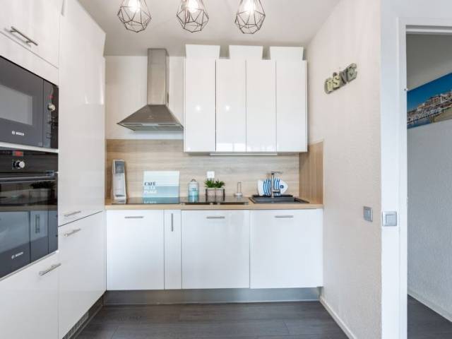 Apartamento de 3 estancias 70 m2 en el 4° piso. Con mobiliario confortable y bonito: salón-comedor con TV (pantalla plana). Salida a la terraza. 2 dorm., cada habitación con 1 cama de matrimonio (1 x 140 cm, 190 cm de longitud). Salida al balcón. Entrada con 1 posibilidad para dormir (80 cm, 190 cm de longitud). Cocina abierta (horno, lavavajillas, 3 placas de vitrocerámica, tostadora, hervidor de agua eléctrico, microondas, congelador, cafetera eléctrica). Ducha, WC separado, doble lavabo. Calefacción eléctrica. Terraza 10 m2, cubierta, orientación oeste. Muebles de terraza. Vista muy bonita al puerto. El alojamiento dispone de: lavadora, plancha. Internet (Wifi, gratis). Plaza de aparcamiento. A tener en cuenta: apartamento para no fumadores. Detector de humo. 400650008929B