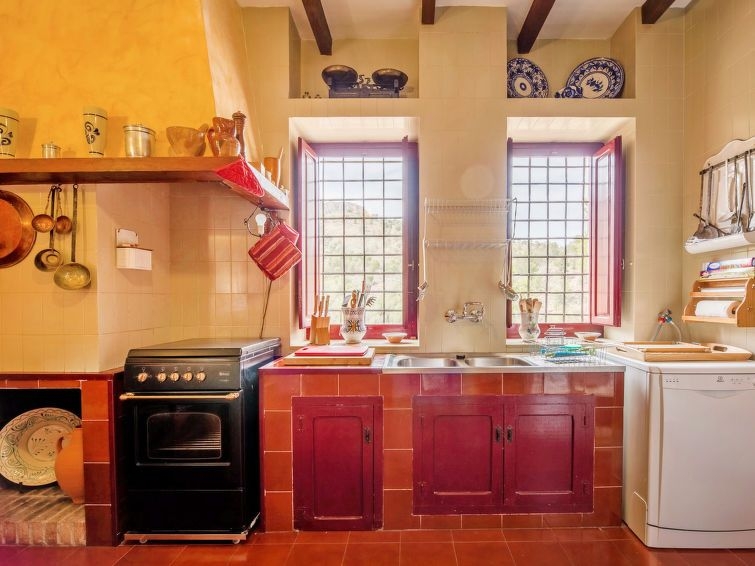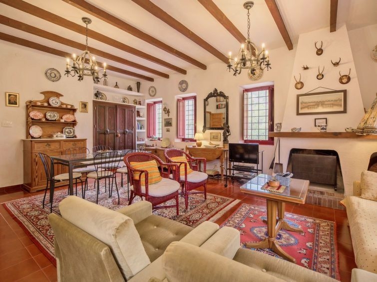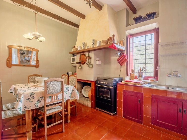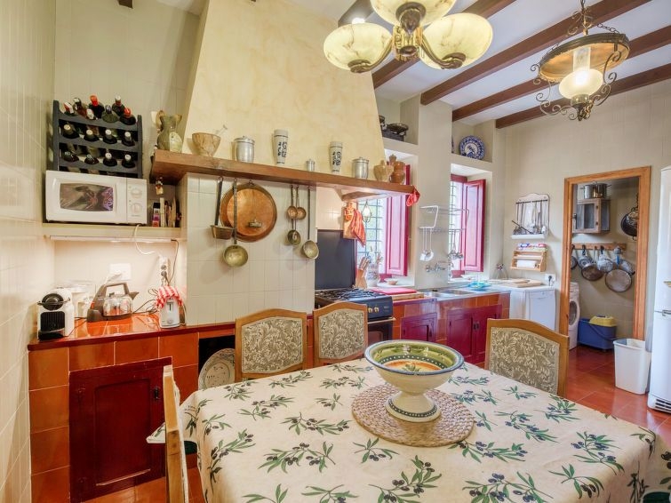 "De la Cruz", casa 5 estancias 145 m2. Con mobiliario rústico: salón-comedor con chimenea, TV satélite, canales internacionales, radio y DVD. Salida a la piscina. 2 dorm., cada habitación con 1 cama de matrimonio. 1 dorm. con 1 cama (105 cm, 190 cm de longitud). 1 dorm. con 2 camas (105 cm, 190 cm de longitud). Cocina (4 fogones, horno, lavavajillas, microondas, congelador) con mesa de comedor, chimenea. Baño/bidet/WC, WC separado. Calefacción eléctrica. Terraza-jardín. Barbacoa, tumbonas (6). Vista a las montañas. El alojamiento dispone de: lavadora, cuna hasta 2 años. Internet (Wifi, gratis). A tener en cuenta: TV solamente ES, EN, FR. 6 radiadores eléctricos. AR.MU.601