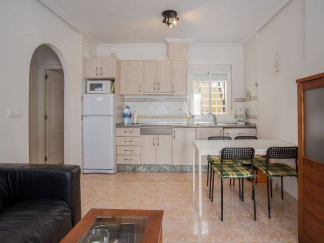 Casa adosada 3 estancias 50 m2. Luminoso, con mobiliario funcional y confortable: salón-comedor abierto con mesa de comedor, canales internacionales, pantalla plana, aire acondicionado y bomba de calor, caliente. Salida a la terraza. 1 dorm. con 1 cama doble. 1 dorm. con 1 x 2 literas (90 cm), 1 cama-nido (1 pers.). Cocina abierta (lavavajillas, 4 placas de vitrocerámica, microondas). Baño/WC. Calefacción eléctrica, aire acondicionado. Terraza 8 m2. Muebles de terraza, barbacoa. El alojamiento dispone de: lavadora, plancha, cuna hasta 2 años, secador de pelo. Internet (Wifi, gratis). VV.MU.688-1