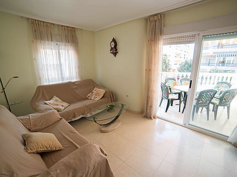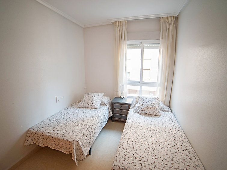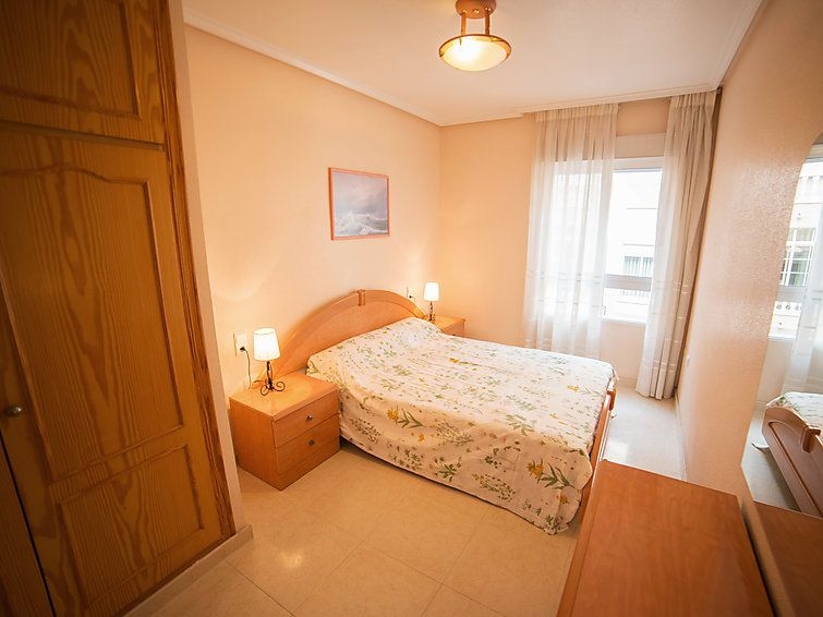 Guardamar del Segura: Casa de apartamentos "Edificio Las Americas", amplio, agradable, confortable. En la localidad, a 500 m del centro de Guardamar del Segura, lugar tranquilo, a 650 m del mar, a 600 m de la playa. En el inmueble: ascensor. Supermercado, restaurante 300 m, playa de arena "playa de Guardamar del Segura" 600 m. "Edificio Las Americas", apartamento de 4 estancias 80 m2. Espacioso y luminoso, con mobiliario confortable y agradable: salón-comedor 20 m2 con mesa de comedor, TV digital, pantalla plana, DVD, aire acondicionado y bomba de calor, caliente. Salida a la terraza. 1 dorm. 12 m2 con 1 cama doble (135 cm, 190 cm de longitud), baño/bidet/WC. 1 dorm. 9 m2 con 2 camas (80 cm, 190 cm de longitud). 1 dorm. 9 m2 con 2 camas (80 cm, 190 cm de longitud). Cocina (horno, 4 placas de vitrocerámica, microondas, cafetera eléctrica) con pasa-platos. Ducha/bidet/WC. Calentador (50 litros). Terraza grande. Muebles de terraza. El alojamiento dispone de: lavadora. A tener en cuenta: apartamento que da a la calle. Apartamento para no fumadores. TV solamente ES. AT-441601-A