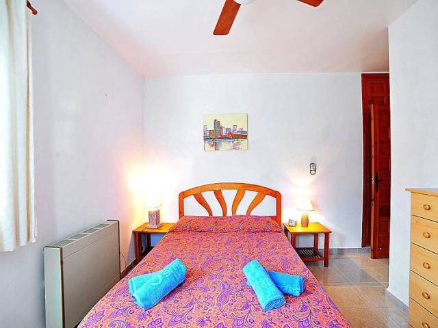 "Carmen", casa 3 estancias 80 m2. Con mobiliario bonito y agradable: salón-comedor con chimenea, TV satélite, DVD y aire acondicionado. Salida a la terraza. 1 dorm. con 1 cama de matrimonio (1 x 140 cm, 200 cm de longitud), aire acondicionado. 1 dorm. doble con (2 x 90 cm, 200 cm de longitud), ducha/WC y aire acondicionado. Cocina abierta (4 fogones, horno, Estufa de gas, 4 fuegos, tostadora, hervidor de agua eléctrico, microondas, congelador, cafetera eléctrica). Ducha/WC. Terraza grande, terraza-jardín. Muebles de terraza, barbacoa, tumbonas. El alojamiento dispone de: lavadora, plancha, secador de pelo. Internet (Wifi, gratis). Plaza de aparcamiento (vallada). Adecuado para familias. AT-451775-A