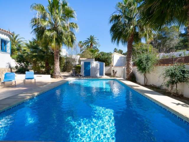 Casa "Carmen", muy bonita, agradable, reformada. En el barrio de Benimeit, a 2 km del centro de Moraira, lugar tranquilo, soleado area residencial (villas), a 2 km del mar, a 2 km de la playa. Privado: terreno 800 m2, jardín grande, bonito, cuidado (vallado), piscina rectangular (4 x 10 m, 140 - 200 cm de profundidad, Disponible por temporada: 01.Ene. - 31.Dic.) con escalera interior. Ducha exterior, barbacoa, aparcamiento (para 2 coches) en el mismo terreno. Supermercado, restaurante, café 200 m, playa de arena "Playa L'Ampolla" 2 km.