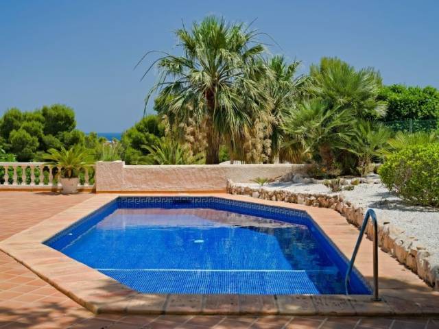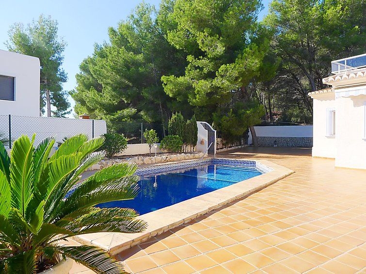 Benissa Costa: Casa de dos viviendas "Gavrena", sencilla de 2 plantas. A 6.6 km del centro de Moraira, a 8.6 km del centro de Calpe, en el distrito Buenavista, a 1.6 km del mar. Privado: terreno 1'000 m2 (vallada), jardín, piscina (4 x 8 m, 100 - 200 cm de profundidad, Disponible por temporada: 01.Ene. - 31.Dic.). Terraza, muebles de jardín. Supermercado 1.4 km, restaurante 1.4 km, playa de arena 5 km, cala para bañarse 1.6 km. Atracciones en los alrededores: Aqualandia, Mudomar, Terra Mítica, Terra Natura y Benidorm Palace (Benidorm). Una parte de la casa está cerrada e inocupada. Depósito de agua.