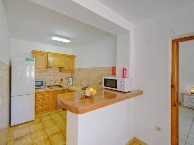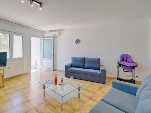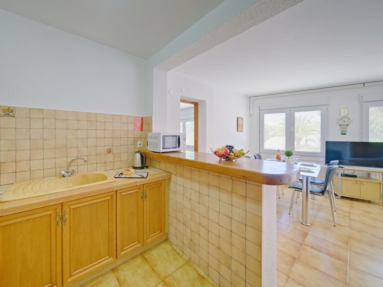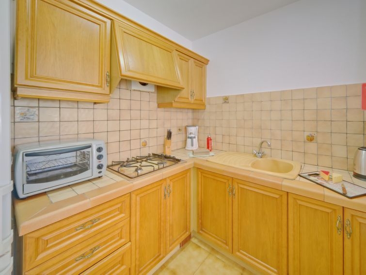 "Gavrena", apartamento de 3 estancias 76 m2, en planta baja. Con mobiliario sencillo: en planta inferior: salón-comedor con TV satélite, TV digital, aire acondicionado y bomba de calor, caliente. Salida a la terraza-jardín. 1 dorm., sin ventanas con 2 camas (90 cm, 190 cm de longitud), ventilador. 1 dorm. con 2 camas (90 cm, 190 cm de longitud), baño/WC, aire acondicionado y bomba de calor, caliente. Cocina abierta (4 fogones, tostadora, hervidor de agua eléctrico, microondas, congelador, cafetera eléctrica). Ducha/WC. Muebles de terraza, tumbonas, porche. El alojamiento dispone de: lavadora, plancha, trona, cuna hasta 2 años, secador de pelo. Internet (Wifi, gratis). Plaza de aparcamiento, garaje. La piscina está en el nivel superior de la casa. Acceso por escaleras. AT-416376-A