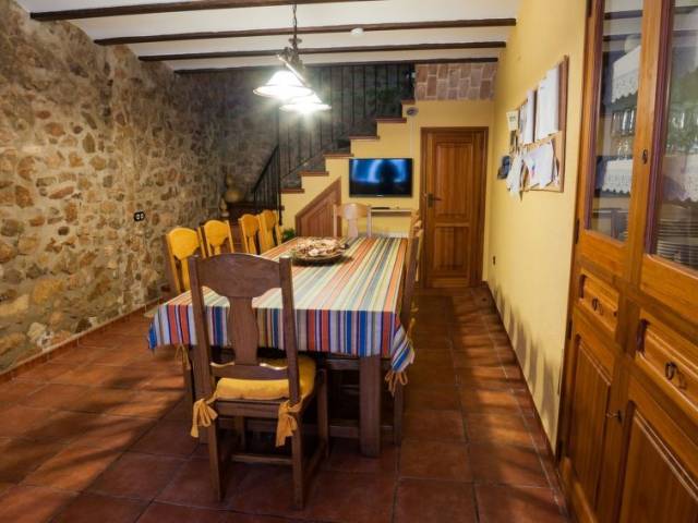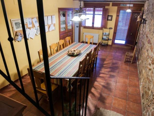 "Rosa", casa rural 6 estancias 150 m2 en 4 plantas. Con mobiliario confortable: comedor con mesa de comedor, TV digital, pantalla plana y calefacción de gas. Grande cocina (horno, lavavajillas, 4 placas de vitrocerámica, tostadora, microondas, congelador, cafetera eléctrica) con mesa de comedor. Planta superior: (escalera de caracol) salón con chimenea y TV. 1 dorm. doble con 1 cama de matrimonio (150 cm, 190 cm de longitud), calefacción de gas. Ducha/WC. Planta superior 2: 1 dorm. doble con 2 camas (90 cm, 190 cm de longitud), calefacción de gas. 1 dorm. doble con 1 cama de matrimonio (150 cm, 190 cm de longitud), calefacción de gas. Baño/bidet/WC. Planta superior 3: 1 dorm. doble con 1 cama de matrimonio (150 cm, 190 cm de longitud), calefacción de gas. Salida a la terraza. Ducha/WC. Terraza grande. Muebles de terraza. Vista bonita a la localidad. El alojamiento dispone de: lavadora, plancha, cuna hasta 2 años, secador de pelo. Internet (Wifi, gratis). Adecuado para familias. ARCS440