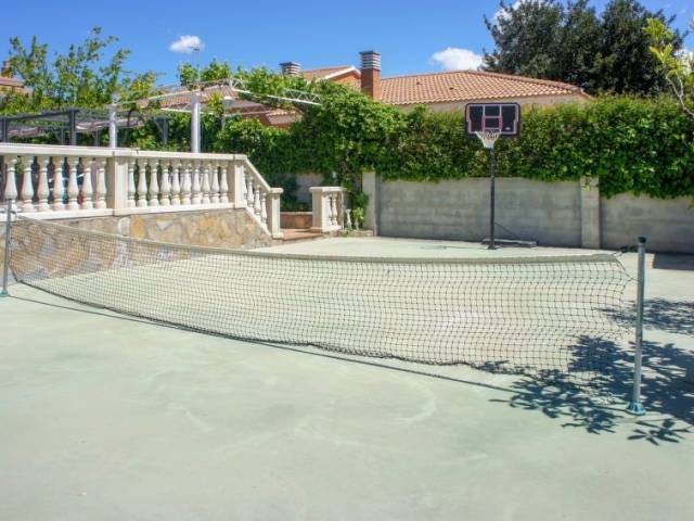 Casa unifamiliar "Papagayo", idónea para niños, agradable del año 1985. Urb. Papagall, a 3 km del centro de Sant Jaume dels Domenys, lugar soleado, a 17 km del mar. Privado: terreno 1'500 m2 (vallada), piscina (35 m2, 220 cm de profundidad, Disponible por temporada: 15.Jun. - 31.Sep.). Ducha exterior, tenis, terraza (12 m2), muebles de jardín, barbacoa. En el inmueble: lavadora. Garaje individual. Tienda de comestibles 200 m, centro comercial 4 km, restaurante 200 m, playa de arena "Sant Salvador beach / Calafell" 17 km. Puerto deportivo 19 km. Atracciones en los alrededores: Port Aventura, Rio León Safari, Tarragona, Vilafranca del Penedes, Poblet, Montserrat. A tener en cuenta: coche recomendable. El propietario no acepta grupos de adolescentes/jóvenes. Autopista 3 km de la casa. Calle principal 200 m de la casa.