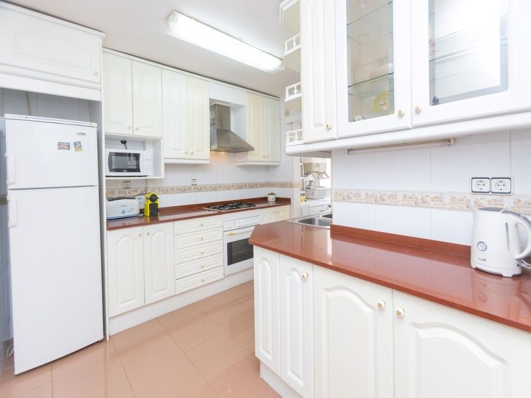 Apartamento de 5 estancias 90 m2 en el 6° piso. Con mobiliario funcional y bonito: salón-comedor con TV digital y aire acondicionado. Salida a la terraza. 1 dorm. con 1 cama de matrimonio y baño/WC. Salida a la terraza. 1 dorm. con 1 cama. 1 dorm. con 1 cama. 1 dorm. con 1 cama de matrimonio. Cocina (4 fogones, horno, lavavajillas, microondas, congelador, cafetera eléctrica). Ducha/WC. Ningún tipo de calefacción. Terraza. Muebles de terraza. Vista al mar. El alojamiento dispone de: lavadora, plancha, cuna hasta 2 años, secador de pelo. Internet (Wifi, gratis). Adecuado para familias. HUTT009107