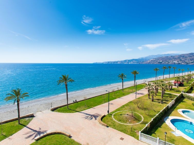 Salobreña: Casa de apartamentos "Penthouse Mayorazgo", agradable. En la localidad, lugar tranquilo en un barrio residencial, a 20 m del mar, a 20 m de la playa, acceso directo a la playa. Comunitario: jardín, piscina (15 x 20 m, 120 - 200 cm de profundidad, Disponible por temporada: 15.Jun. - 15.Sep.). Ducha/WC en zona de piscina, piscina para niños, tenis. En el inmueble: acceso a internet, Wifi, ascensor, lavadora. Tienda 3 km, supermercado 2.5 km, playa de arena "Playa Salobreña" 20 m. Atracciones en los alrededores: Almuñecar, Motril, Granada, Alpujarras, Frgiliana, Nerja. Zonas de esquí populares fácilmente accesibles: Sierra Nevada. Zona de senderismo Sierra Nevada, Sierra Tejeda, Sierra Almijara. El propietario no acepta grupos de adolescentes/jóvenes.