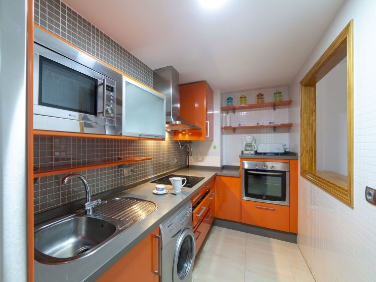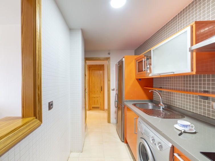 Apartamento de 3 estancias 66 m2 en el 4° piso. Con mobiliario funcional: salón-comedor con TV digital y aire acondicionado. Salida al balcón. 1 dorm. con 1 cama de matrimonio (150 cm, 190 cm de longitud). 1 dorm. con 2 camas (105 cm, 190 cm de longitud). Cocina abierta (horno, tostadora, microondas, congelador, cafetera eléctrica). Baño/WC. Calefacción, aire acondicionado. Terraza 8 m2. Muebles de terraza. Vista al mar, a las montañas y a la localidad. El alojamiento dispone de: lavadora, plancha, cuna (extra), secador de pelo. Internet (Wifi, gratis). Plaza de aparcamiento n. 115. Adecuado para familias. VFT/AL/00531