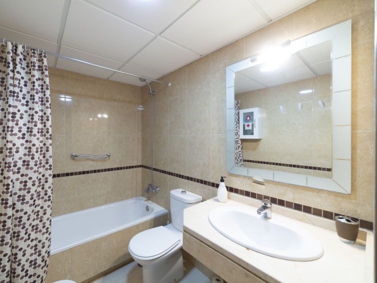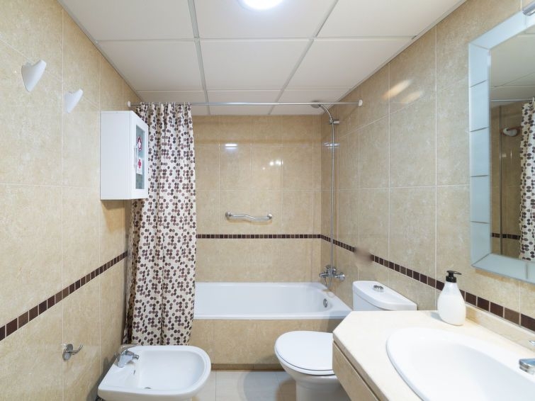 Apartamento de 3 estancias 66 m2 en el 4° piso. Con mobiliario funcional: salón-comedor con TV digital y aire acondicionado. Salida al balcón. 1 dorm. con 1 cama de matrimonio. 1 dorm. con 2 camas (105 cm, 190 cm de longitud). Cocina abierta (horno, tostadora, microondas, congelador, cafetera eléctrica). Baño/WC. Calefacción, aire acondicionado. Terraza 8 m2. Muebles de terraza. Vista al mar, a las montañas y a la localidad. El alojamiento dispone de: lavadora, plancha, cuna (extra), secador de pelo. Internet (Wifi, gratis). Plaza de aparcamiento n. 116. Adecuado para familias. VFT/AL/00532