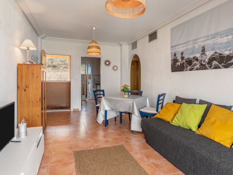 "Marina de la Torre", apartamento de 3 estancias 60 m2 en el 2° piso. Luminoso, con mobiliario confortable: salón-comedor con mesa de comedor, TV digital, pantalla plana, aire acondicionado y bomba de calor, caliente. Salida a la terraza. 1 dorm. con 1 cama doble (180 cm, 200 cm de longitud), aire acondicionado y bomba de calor, caliente. 1 dorm. con 2 camas (90 cm, 190 cm de longitud), aire acondicionado y bomba de calor, caliente. Cocina abierta (horno, lavavajillas, 4 placas de vitrocerámica, tostadora, microondas, congelador). Baño/WC. Terraza grande. Muebles de terraza. Vista bonita al mar y a la localidad. El alojamiento dispone de: lavadora, plancha, secador de pelo. Internet (Wifi, gratis). A tener en cuenta: apartamento para no fumadores. 1 mascota / perro. VFT/AL/07060