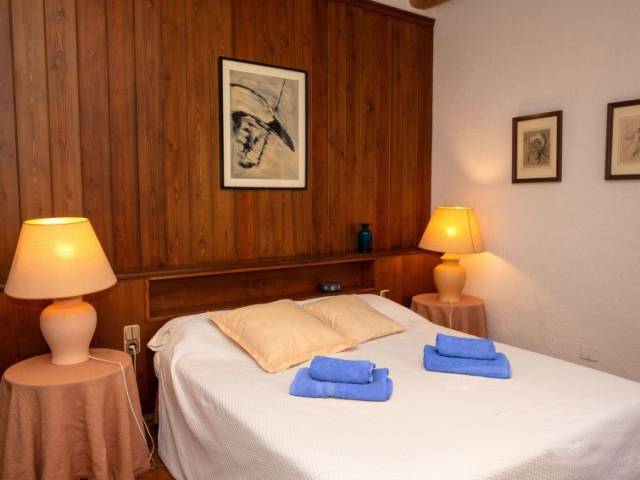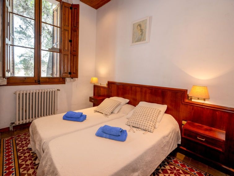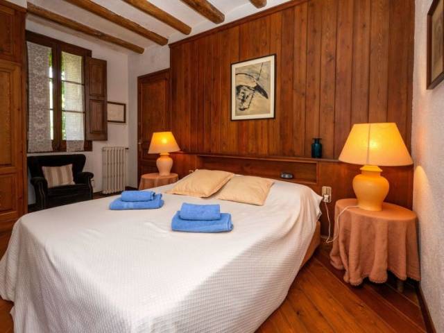 "Can Lluro", casa 8 estancias 272 m2. Con mobiliario confortable y rústico: sala de estar con mesa de comedor, TV digital y calefacción de gas. 1 dorm. con 1 cama de matrimonio (160 cm, 190 cm de longitud), baño/bidet/WC y calefacción de gas. 2 dorm., cada habitación con 2 camas (90 cm, 180 cm de longitud), calefacción de gas. Cocina (4 fogones, horno, microondas) con mesa de comedor. Baño/bidet/WC. Planta superior: salón-comedor con mesa de comedor, TV digital y calefacción de gas. Salida a la terraza. 1 dorm. con 2 camas (90 cm, 190 cm de longitud), ducha/WC y calefacción de gas. 4 dorm., cada habitación con 2 camas (90 cm, 190 cm de longitud), calefacción de gas. (4 fogones, horno, lavavajillas, tostadora, microondas, cafetera eléctrica, Cápsulas de café (Nespresso) extra) con mesa de comedor. Baño/bidet/WC. Terraza-jardín. Muebles de terraza, muebles de balcón, barbacoa, tumbonas. El alojamiento dispone de: lavadora, secadora, plancha, trona, cuna hasta 2 años, secador de pelo. Internet (Wifi, gratis). Plaza de aparcamiento (vallada, 4 Coches). Adecuado para familias. HUTB-017985