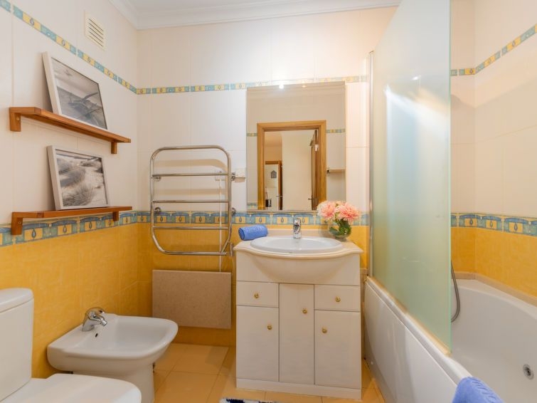 Casa de apartamentos "Holideck", muy sencillo, confortable. En el distrito Loule, lugar céntrico, a 14 km del mar. En el inmueble: Wifi, ascensor, lavadora. Parking público a 50 m. Tienda de comestibles, supermercado 650 m, centro comercial 6.4 km, restaurante 1.2 km, bar 3.3 km, panadería 550 m, café 120 m, alquiler de bicicletas 6.2 km, playa de arena "Praia da Gaivota" 13.6 km. Puerto para yates 15.9 km, campo de golf (18 hoyos) 15.6 km, tenis 2.5 km, minigolf 13.8 km, centro ecuestre 2.9 km, parque infantil 200 m. Atracciones en los alrededores: Aquashow Park - WaterPark 9.5 km, Karting de Almancil 7.6 km, MAR Shopping Algarve 6.4 km, Algarve Buggy Tours 7.8 km, Mercado Municipal de Loulé 2.6 km, Vilamoura 15.7 km. Zona de senderismo Miradouro do Caldeirão 33.4 km. A tener en cuenta: coche recomendable. Grupos de jóvenes sólo bajo petición. "Holideck", apartamento de 3 estancias 51 m2. Espacioso, con mobiliario funcional y confortable: sala de estar con mesa de comedor, TV, pantalla plana, aire acondicionado, bomba de calor, caliente y persianas eléctricas. Salida a la terraza. 1 dorm. con 1 cama de matrimonio (180 cm, 200 cm de longitud). 1 dorm. con 1 cama de matrimonio (160 cm, 200 cm de longitud). Cocina (4 fogones, horno, lavavajillas, tostadora, hervidor de agua eléctrico, microondas, congelador, cafetera eléctrica, Cápsulas de café (Nespresso not incl.)) con mesa de comedor. Media bañera/WC. Muebles de terraza. Vista al ciudad. El alojamiento dispone de: lavadora, plancha, trona, cuna hasta 2 años, secador de pelo. Internet (Wifi). A tener en cuenta: adecuado para familias. Casa para no fumadores. Extintores. 80808/AL