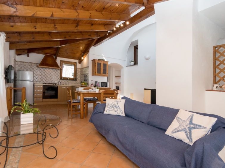Apartamento de 3 estancias 80 m2, en la planta baja. Luminoso, parcialmente reformado en 2023, con mobiliario sencillo y funcional: 1 dorm. doble, ventana al salón. 1 dorm. doble. Salón-comedor con 1 sofá-cama, TV y pantalla plana. Salida al jardín. Cocina abierta (4 fogones, 4 fuegos, tostadora, hervidor de agua eléctrico, microondas) con mesa de comedor. Salida al jardín. Ducha/bidet/WC. Calefacción disponible desde el 01.11. al 31.03, Calefacción no en todas las estaciones. Terraza, terraza-jardín parcialmente cubierta, jardín 80 m2. Muebles de terraza, barbacoa, tumbonas (4). Vista panorámica espléndida al mar, al jardín, al paisaje, a la localidad y Capri Island. El alojamiento dispone de: lavadora, plancha, secador de pelo. Internet (Wifi, gratis). Plaza de aparcamiento (1 coche) a 100 m. Adecuado para familias. 15063044EXT0725