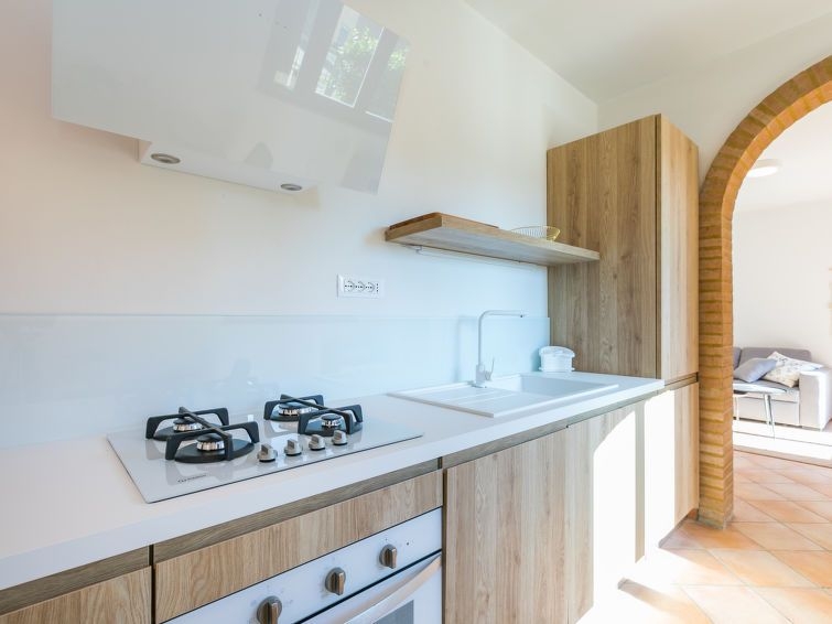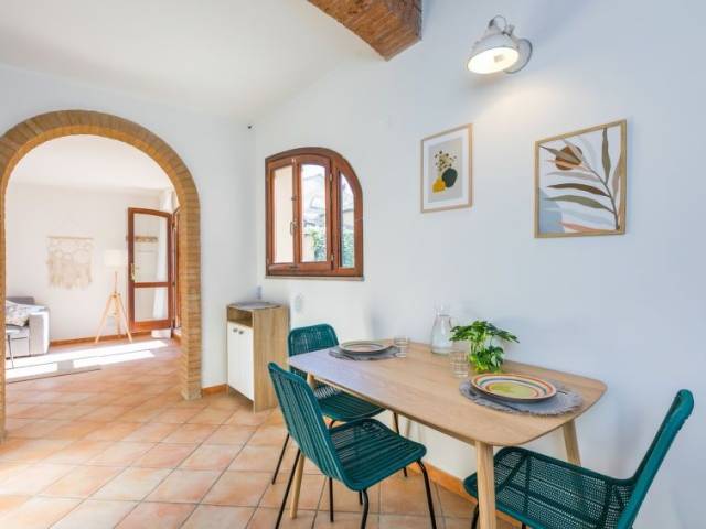 Casa 2 estancias 70 m2, en la planta baja. Espacioso y luminoso, con mobiliario confortable y de buen gusto: salón-dormitorio con 1 sofá-cama y TV. Salida a la terraza-jardín. 1 dorm. doble. Grande cocina abierta (horno, lavavajillas, Estufa de gas, 4 fuegos, hervidor de agua eléctrico, congelador, cafetera eléctrica). Ducha/bidet/WC. Calefacción de gas, aire acondicionado. Terraza-jardín pequeña. Muebles de terraza. El alojamiento dispone de: trona, cuna hasta 2 años (extra), secador de pelo. Internet (Wifi, gratis). Plaza de aparcamiento (vallada). A tener en cuenta: permitido máximo 1 mascota / perro. Entrada privada. La ropa de cama, las toallas, la limpieza final y los gastos de electricidad están incluidos. 050015LTN0077