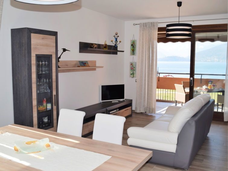 "La Perla di Laveno", apartamento de 3 estancias 80 m2 en el 3° piso. Con mobiliario confortable: salón-comedor grande con ventanal con TV. Salida a la terraza. 1 dorm. doble. Salida al balcón. 1 dorm. con 1 sofá-cama doble. Salida al balcón. Rincón-cocina (5 fogones, horno, lavavajillas, hervidor de agua eléctrico, microondas, congelador, cafetera eléctrica). Ducha/bidet/WC. Calefacción de gas. Calefacción disponible desde el 15.10. al 15.04. 2 balcones pequeños, terraza 12 m2, cubierta. Muebles de terraza. Vista al lago. El alojamiento dispone de: lavadora. Internet (Wifi, gratis). CIR: 012087-CNI-00016