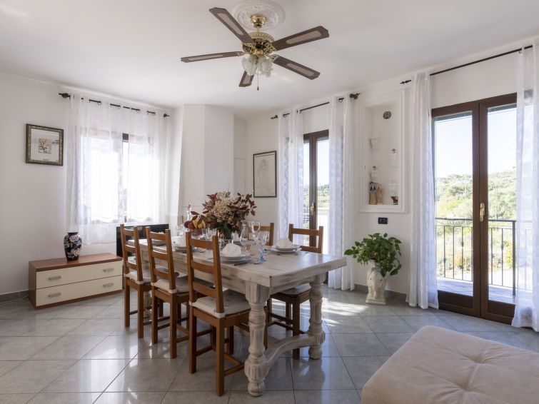 Apartamento de 3 estancias 120 m2 en el 1° piso. Luminoso, con mobiliario funcional y agradable: 1 dorm. con 1 cama doble (1 x 160 cm). Salida a la terraza. 1 dorm. con 1 cama doble (1 x 160 cm). Salón-dormitorio abierto grande con 1 sofá-cama doble (1 x 160 cm), mesa de comedor. Salida a la terraza. Cocina abierta (horno, lavavajillas, 1 fuegos, tostadora, hervidor de agua eléctrico, cafetera eléctrica) con mesa de comedor. Salida a la terraza. Ducha/WC, doble lavabo. Terraza grande 30 m2. Muebles de terraza, barbacoa, tumbonas (2). Vista panorámica muy bonita al mar y al valle. El alojamiento dispone de: lavadora, cuna, secador de pelo. Internet (Wifi). A tener en cuenta: 2 mascotas / perros. Entrada privada. CITRA:008024-LT-0083