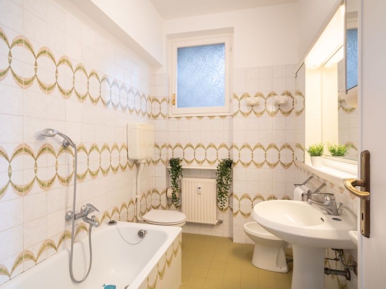 "Elena", apartamento de 3 estancias 80 m2 en el 1° piso. Salón-comedor con ventanal. Salida al balcón. 1 dorm. con ventanal con 2 camas (90 cm, 200 cm de longitud). Salida al balcón. 1 dorm. doble. Cocina (horno, lavavajillas, 4 fuegos, tostadora). Baño/bidet/WC. Calefacción de gas. Calefacción disponible desde el 01.11. al 30.04. Balcón 15 m2. Muebles de balcón. Vista panorámica muy bonita al mar. El alojamiento dispone de: lavadora. Plaza de aparcamiento n. 1. A tener en cuenta: sin ascensor. 008065-LT0219