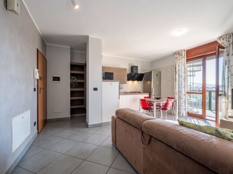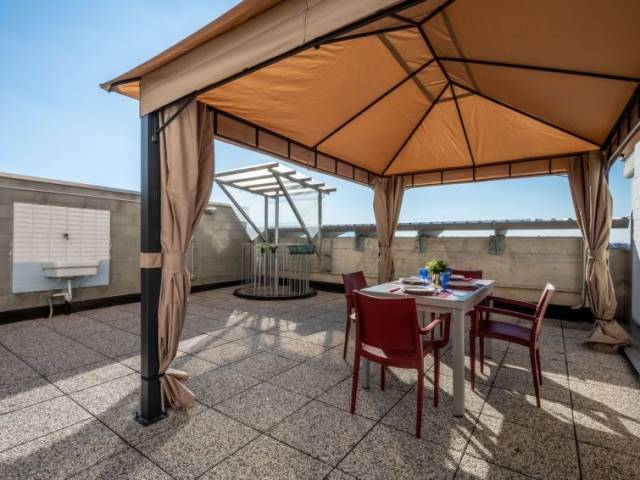 "Appartamento Savi 2", apartamento de 2 estancias 55 m2 en 2 plantas en el 5° piso. Con mobiliario moderno: salón-comedor con 1 sofá-cama doble y TV. Salida al balcón, a la terraza. 1 dorm. doble. Salida al balcón. Rincón-cocina (horno, lavavajillas, Estufa de gas, 4 fuegos, microondas, cafetera eléctrica). Ducha/bidet/WC. Calefacción por el suelo. Calefacción disponible desde el 22.10. al 15.04. Terraza 65 m2. Muebles de terraza, muebles de balcón, barbacoa eléctica, tumbonas. Vista al ciudad. El alojamiento dispone de: lavadora, secador de pelo. Internet (Wifi, gratis). CIR:00127202362