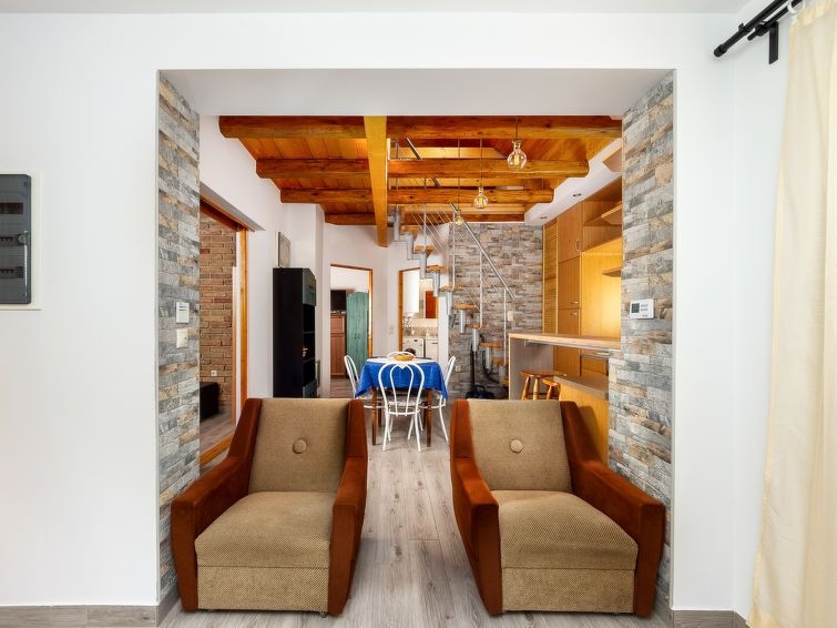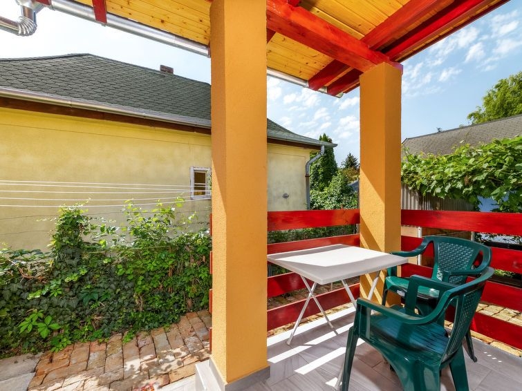 Balatonmáriafürdő: Casa unifamiliar "Violette", bonita. Lugar céntrico, a 300 m de un lago. Privado: terreno 270 m2 (vallada), terreno con hierba. En el inmueble: Wifi, aire acondicionado, lavadora. Tienda de comestibles 350 m, restaurante 50 m, playa de césped 300 m.