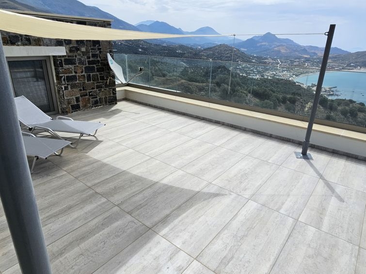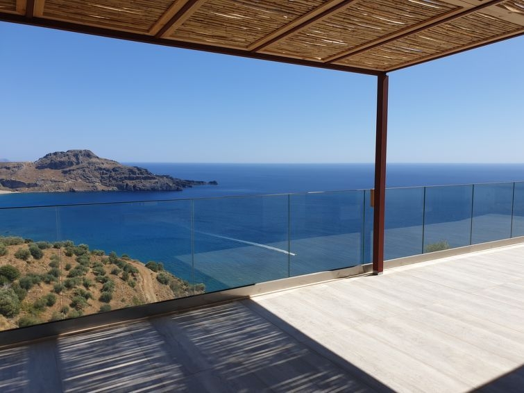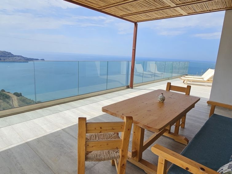 "Paradosiako", villa 3 estancias 80 m2 en 2 plantas. Espacioso y luminoso, con mobiliario confortable y bonito: salón abierto con TV satélite (pantalla plana). Salida a la terraza, a la piscina. 2 dorm. dobles, cada habitación con 2 camas y TV satélite (pantalla plana). Salida a la terraza. Cocina abierta (horno, lavavajillas, 4 placas de vitrocerámica, tostadora, hervidor de agua eléctrico, microondas, cafetera eléctrica) con mesa de comedor. Ducha/WC. Aire acondicionado. Planta superior: (escaleras sin barandilla) entre planta abierta con 1 plegatín. Ducha/WC. Aire acondicionado. Terraza grande. Vista panorámica muy bonita al mar y al paisaje. El alojamiento dispone de: lavadora, caja fuerte, plancha, secador de pelo. Internet (Wifi, gratis). A tener en cuenta: adecuado para familias. Casa para no fumadores. 122115350000