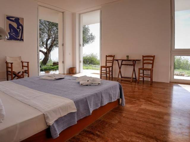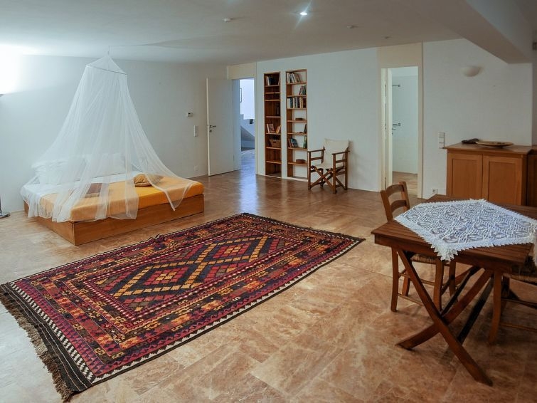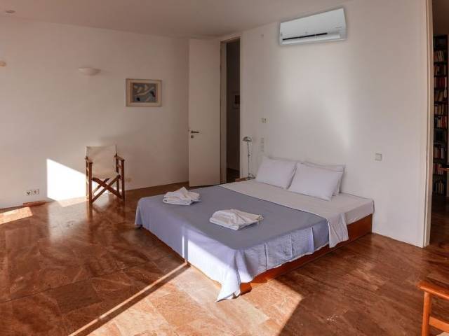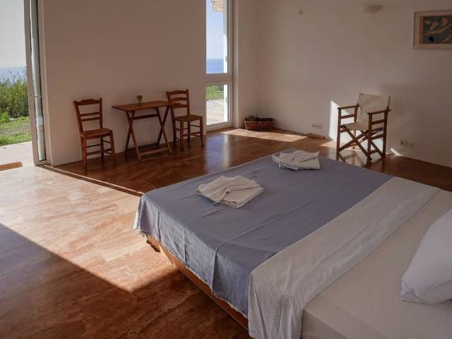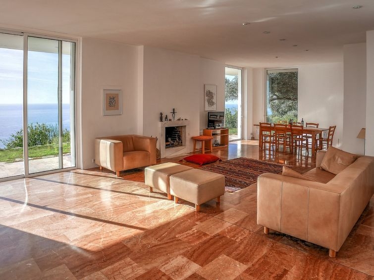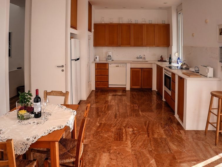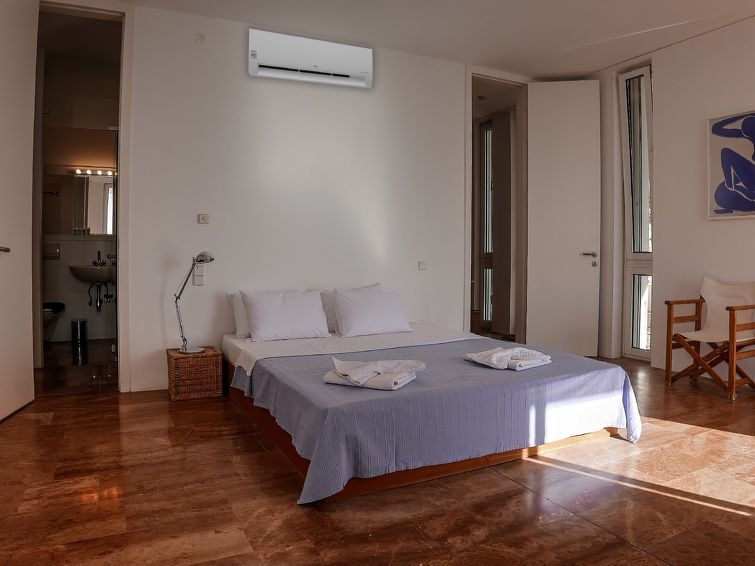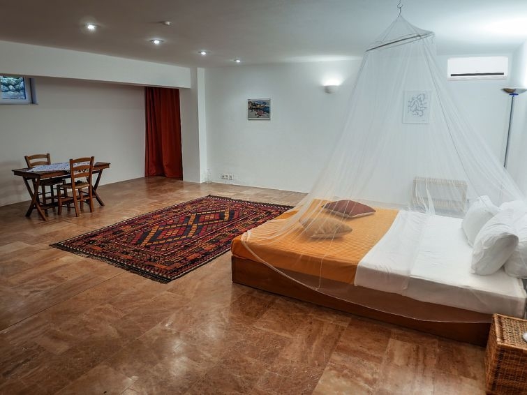 "Loos", villa 4 estancias en 2 plantas. Espacioso y luminoso, con mobiliario confortable y bonito: 1 dorm. doble, grande con 1 cama doble y ducha/WC. Salida al jardín. Aire acondicionado. Planta superior: (escaleras sin barandilla) salón-dormitorio abierto con 2 sofás-cama, chimenea, mesa de comedor y TV (pantalla plana), DVD. Salida al jardín, a la terraza. 2 dorm. dobles, cada habitación con 1 cama doble y ducha/WC. Salida a la terraza. Cocina abierta (horno, lavavajillas, 4 placas de vitrocerámica, tostadora, hervidor de agua eléctrico, microondas, cafetera eléctrica) con mesa de comedor. WC separado. Aire acondicionado. Terraza grande parcialmente cubierta. Vista panorámica bonita al mar y al paisaje. El alojamiento dispone de: lavadora, caja fuerte, plancha, secador de pelo. Internet (Wifi, gratis). Adecuado para familias. 1041K112K2818601