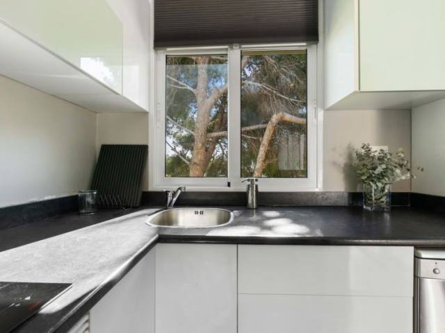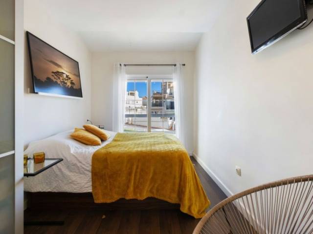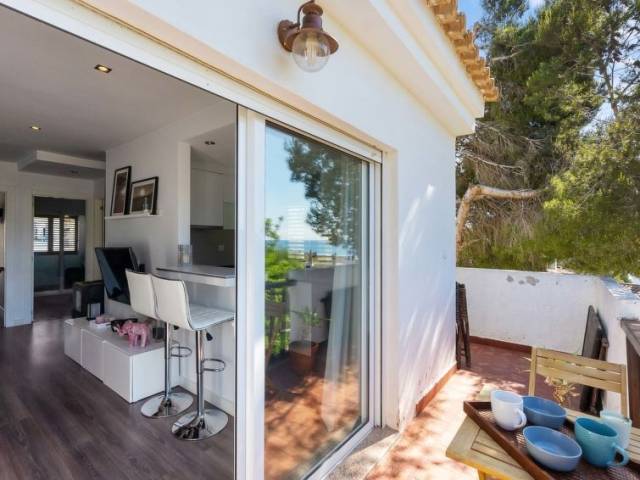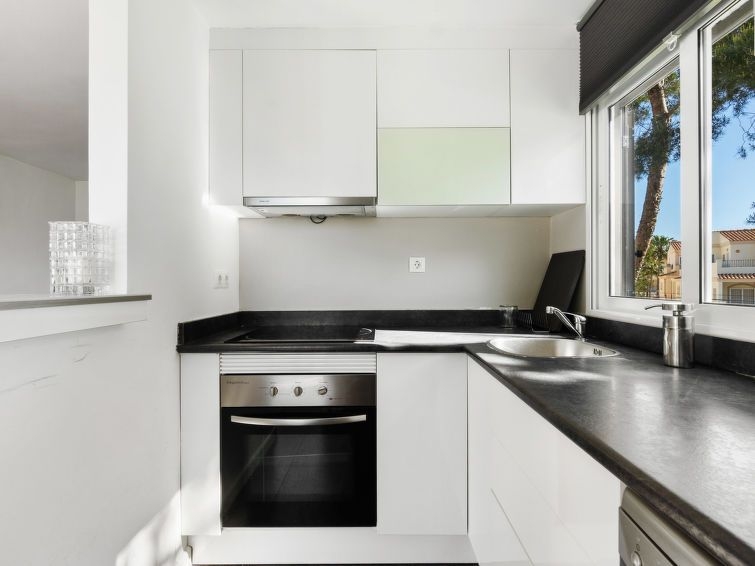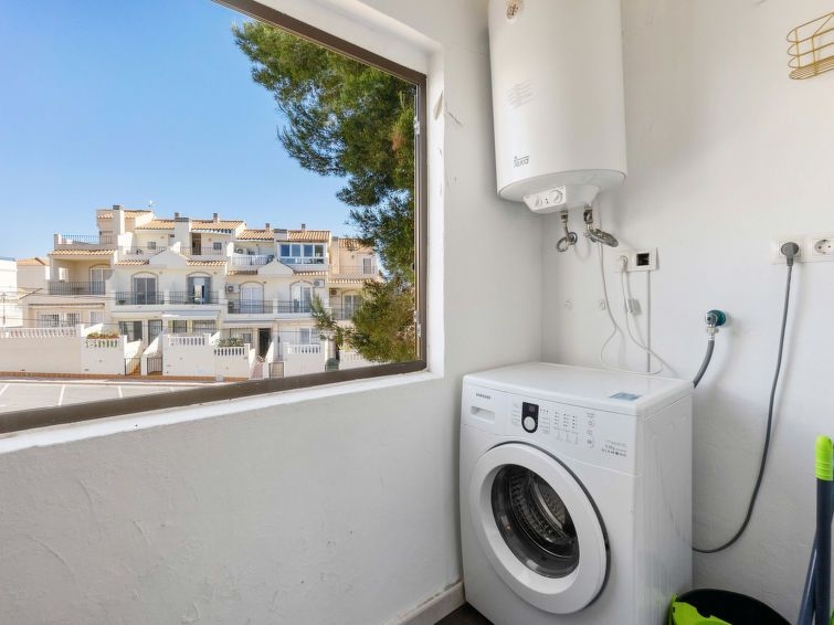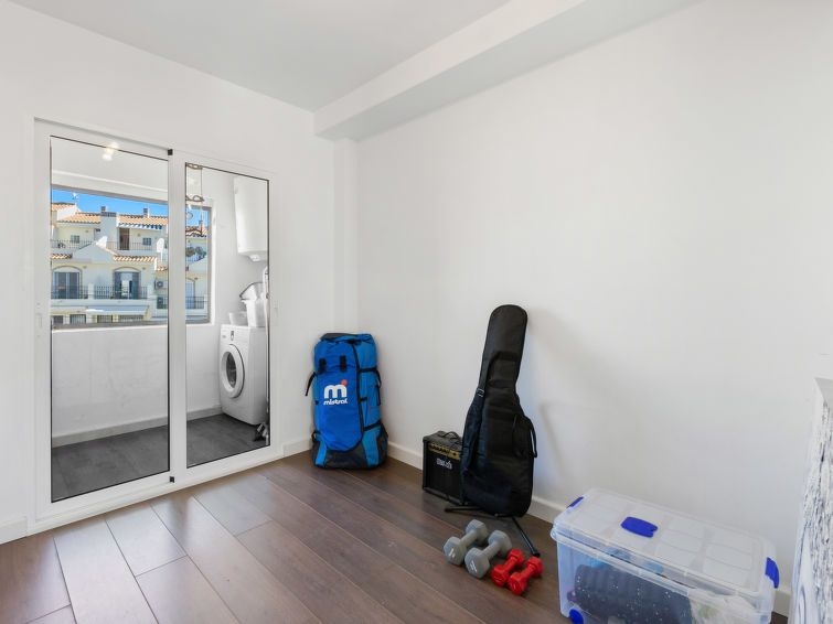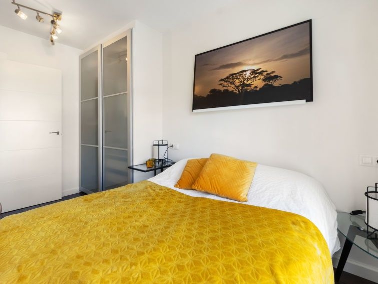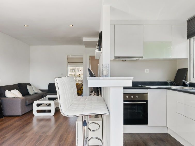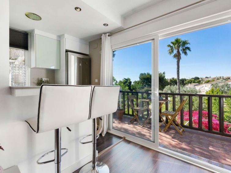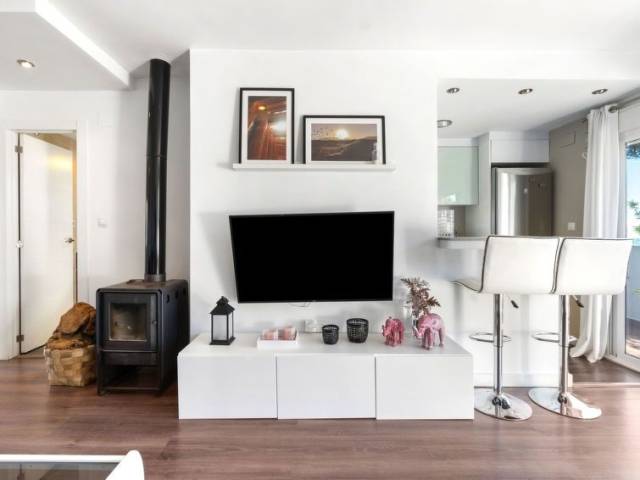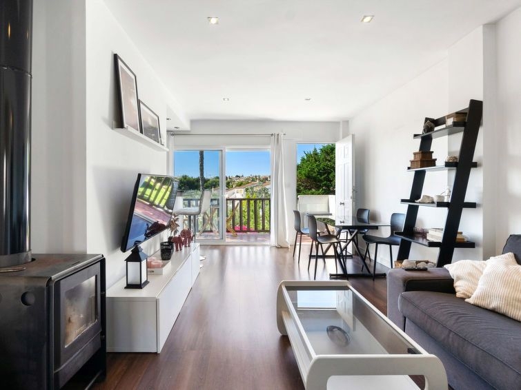 "Mediterráneo", ático de 3 estancias 60 m2, en planta superior. Luminoso, con mobiliario funcional y confortable: 2 dorm. dobles, cada habitación con 1 cama doble (160 cm, 200 cm de longitud). Salón-comedor con chimenea, mesa de comedor, TV digital y pantalla plana. Salida al balcón. Cocina abierta (horno, lavavajillas, 4 placas de vitrocerámica, tostadora, microondas, congelador, cafetera eléctrica) con pequeño barra americana, calentador (80 litros). Baño/WC. Ningún tipo de calefacción. Vista al mar. El alojamiento dispone de: lavadora, plancha, secador de pelo. La televisón es una smart TV. R000000001