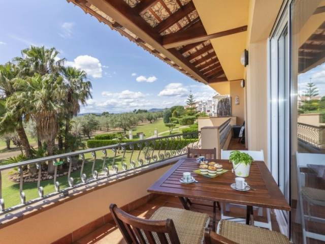 Panoramica Golf a 6 km de San Jordi: Casa de apartamentos "Les Oliviers", agradable, confortable, rodeado de árboles y campos. 8 apartamentos en la propiedad. Lugar tranquilo, a 13 km del mar, a 13 km de la playa, en campo de golf. Comunitario: terreno, piscina (10 x 8 m, Disponible por temporada: 01.Ene. - 31.Dic. horario piscina: 10:00-20:00). Ducha exterior. En el inmueble: aire acondicionado. (14 escalones). Aparcamiento. Supermercado 400 m, centro comercial 13 km, restaurante, bar, café 300 m. Campo de golf (18 hoyos) 250 m. Atracciones en los alrededores: Peñiscola 30 km, Vinaros 13 km, Pantano de la Senia 12 km, Pitch&putt 250 m. Zona de senderismo La Senia 12 km. A tener en cuenta: coche recomendable, sin ascensor. Grupos de jóvenes sólo bajo petición. Carga y descarga de equipaje posible en la casa de vacaciones. Residencia con vigilancia. La propiedad con ref: ES9600.301.1 está situada en la misma parcela. Vecindario muy sensible a ruidos. Se ruega respetar la tranquilidad y normas de buen comportamiento.