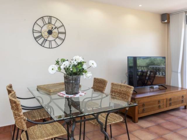 "Les Oliviers", apartamento de 3 estancias 80 m2. Con mobiliario confortable y de buen gusto: salón-comedor con TV digital. Salida a la terraza. 1 dorm. con 2 camas (90 cm, 190 cm de longitud). Salida a la terraza. 1 dorm. con 1 cama de matrimonio (160 cm, 190 cm de longitud), ducha/WC. Salida a la terraza. Cocina (horno, lavavajillas, 4 placas de vitrocerámica, tostadora, hervidor de agua eléctrico, congelador, cafetera eléctrica). Ducha/WC. Aire acondicionado, aire caliente. Terraza. Muebles de terraza (2). Vista bonita a la piscina, a la localidad y Campo de golf. El alojamiento dispone de: lavadora, plancha, secador de pelo. Internet (Wifi, gratis). Plaza de aparcamiento. A tener en cuenta: apartamento para no fumadores. TV solamente ES. R0000000001