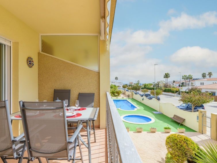 Vinaros norte a 5 km de Vinaros: Casa de apartamentos "Majari 2", bonito, agradable, confortable. 30 apartamentos en la propiedad. En la localidad, a 4.5 km del centro de vinaros, lugar tranquilo, a 500 m del mar. Comunitario: jardín césped, piscina rectangular (10 x 5 m, 120 - 180 cm de profundidad, Disponible por temporada: 01.May. - 30.Sep. horario piscina: 10:00-21:00). Piscina para niños. Acceso por escaleras (40 escalones) hasta la casa. Aparcamiento n. 2 (número limitado). Tienda 4.5 km, tienda de comestibles 3 km, centro comercial 4.7 km, restaurante 300 m, cala para bañarse 500 m. Campo de golf (18 hoyos) 25 km. Atracciones en los alrededores: Laberinto mas grande españa 23 km, Peñiscola 25 km, Golf Panoramica 25 km. A tener en cuenta: coche recomendable, sin ascensor. Equipamiento para bebés (incluido). Vivienda adecuada para 4 adultos.