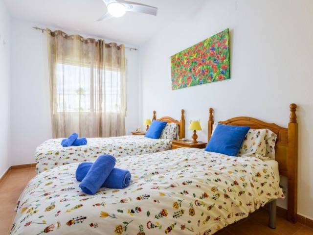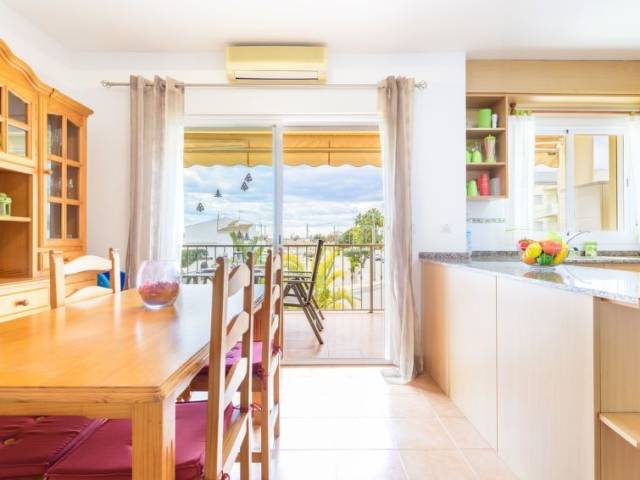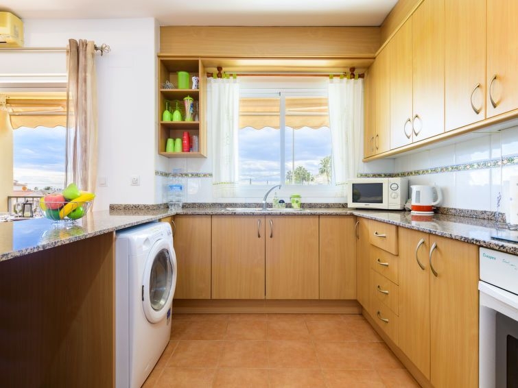 "Majari 2", apartamento de 3 estancias 76 m2, en planta superior. Vivienda adecuada para 4 adultos. Luminoso, con mobiliario funcional y bonito: salón-comedor abierto con mesa de comedor, TV digital y aire acondicionado. Salida a la terraza. 1 dorm. con 1 cama de matrimonio (1 x 150 cm, 190 cm de longitud), ventilador. 1 dorm. con 2 camas (90 cm, 190 cm de longitud), ventilador. Cocina abierta (horno, 4 placas de vitrocerámica, tostadora, microondas, congelador, cafetera eléctrica) con barra americana. Baño/WC. Calefacción eléctrica. Calefacción no en todas las estaciones. Terraza grande. Muebles de terraza, tumbonas (2). Vista lateral al mar y a la piscina. El alojamiento dispone de: lavadora, plancha, secador de pelo. Internet (Wifi, gratis). Plaza de aparcamiento n. 2, garaje junto a la casa. A tener en cuenta: adecuado para familias apartamento que da a la calle. 1 mascota / perro. TV solamente ES. Sin ascensor. VT-42230-CS