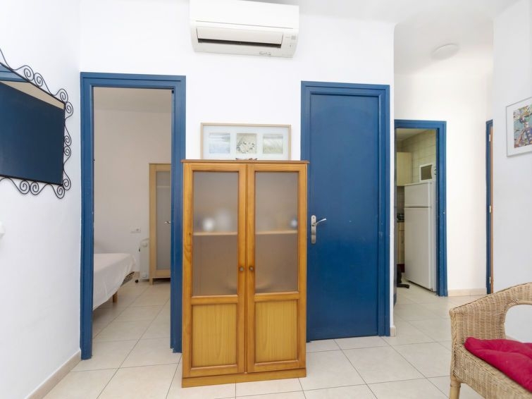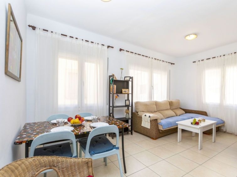 Apartamento de 3 estancias 41 m2, orientación noroeste. Luminoso, con mobiliario sencillo y confortable: salón-comedor con mesa de comedor, TV, TV digital y aire acondicionado. 1 dorm. doble con 1 cama doble (135 cm, 190 cm de longitud). 1 dorm. con 2 camas (90 cm, 190 cm de longitud). Pequeña cocina (2 placas de vitrocerámica, tostadora, hervidor de agua eléctrico, microondas, congelador, cafetera eléctrica). Ducha/WC. Ningún tipo de calefacción. Vista al ciudad. El alojamiento dispone de: lavadora, plancha, trona, cuna hasta 2 años, secador de pelo. Internet (Wifi, gratis). A tener en cuenta: apartamento que da a la calle. TV solamente ES. HUTG-004991