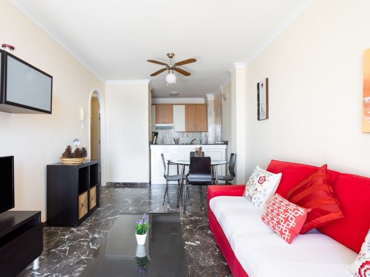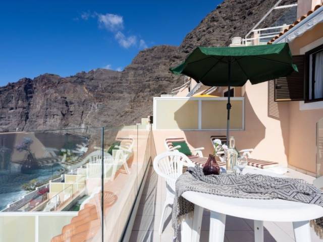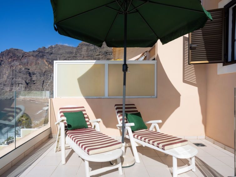 Apartamento de 2 estancias 60 m2 en el 3° piso. Con mobiliario funcional y confortable: salón-comedor con 1 sofá-cama y TV cable. Salida a la terraza. 1 dorm. con 1 cama de matrimonio. Cocina abierta (horno, 4 placas de vitrocerámica, microondas, congelador, cafetera eléctrica). Baño/bidet/WC. Calentador (50 litros). Ningún tipo de calefacción. Terraza 20 m2. Muebles de terraza, tumbonas (2). Vista al mar y a los acantilados de los Gigantes. El alojamiento dispone de: lavadora. Internet (Wifi). A-38-4-0004431