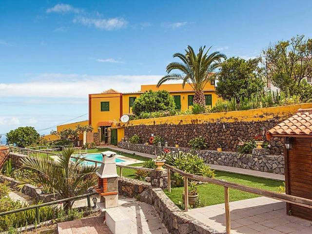 La Orotava: Casa "Camino La Candelaria", bonita, rústica. En las afueras de la localidad, en una pendiente, a 6 km del mar. Comunitario: terreno 20'000 m2 con césped, terreno con árboles frutales, bonito jardín para relajarse, piscina (7 x 4 m, 120 - 150 cm de profundidad, Disponible por temporada: 01.Ene. - 31.Dic.). WC en zona de piscina, ducha exterior, casita de piscina con nevera, muebles de jardín, barbacoa. En el complejo: Wifi. Aparcamiento en el mismo terreno. Tienda de comestibles, restaurante 300 m, parada de autobús 20 m, playa de arena 6 km. El propietario no acepta grupos de adolescentes/jóvenes. A tener en cuenta: calle principal 50 m de la casa. Se pueden reservar alojamientos adicionales. Solarium de 20 m2. Cocina exterior con 4 placas. La vivienda dispone de vista panorámica al Teide y energía solar. En esta vivienda se puede contratar con antelación servicio de organización de bodas, comuniones, cumpleaños y eventos en general (todo extra y bajo petición).