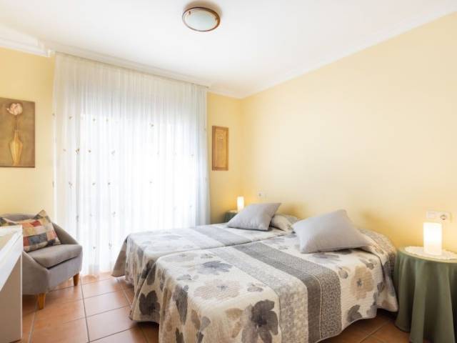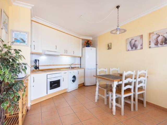 Apartamento de 2 estancias 65 m2, en la planta baja. Con mobiliario agradable: salón-comedor con TV y canales internacionales (pantalla plana), ventilador. Salida a la terraza. 1 dorm. doble con 2 camas (90 cm de longitud), TV. Cocina abierta (4 fogones, horno, microondas, congelador, cafetera eléctrica) con mesa de comedor. Ducha/bidet/WC. Calentador (50 litros). Ningún tipo de calefacción. Terraza 16 m2. Muebles de terraza. Vista al mar y a las montañas. El alojamiento dispone de: lavadora, plancha, cuna hasta 2 años, secador de pelo. Internet (Wifi, gratis). 1 mascota pequeña / perro. 38-4-0089315