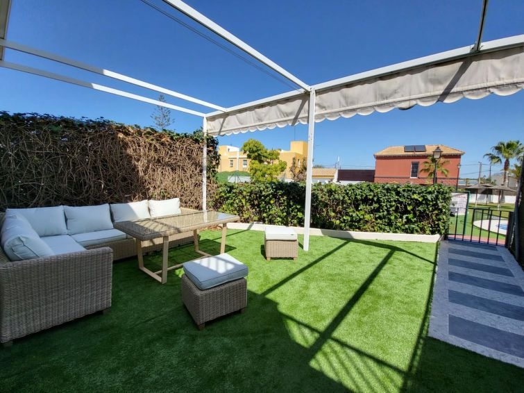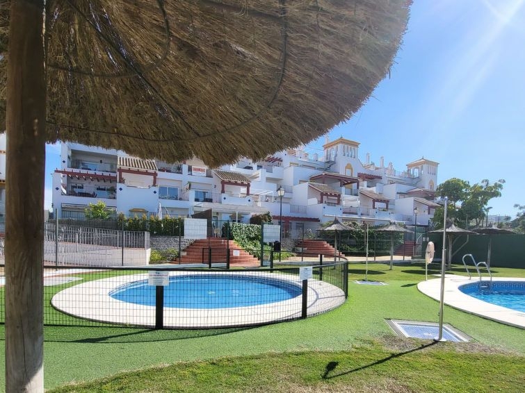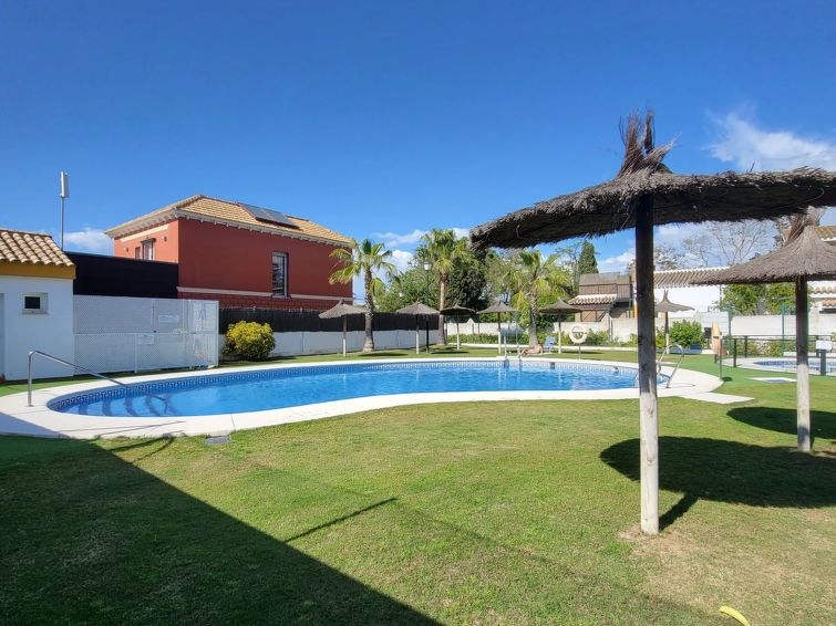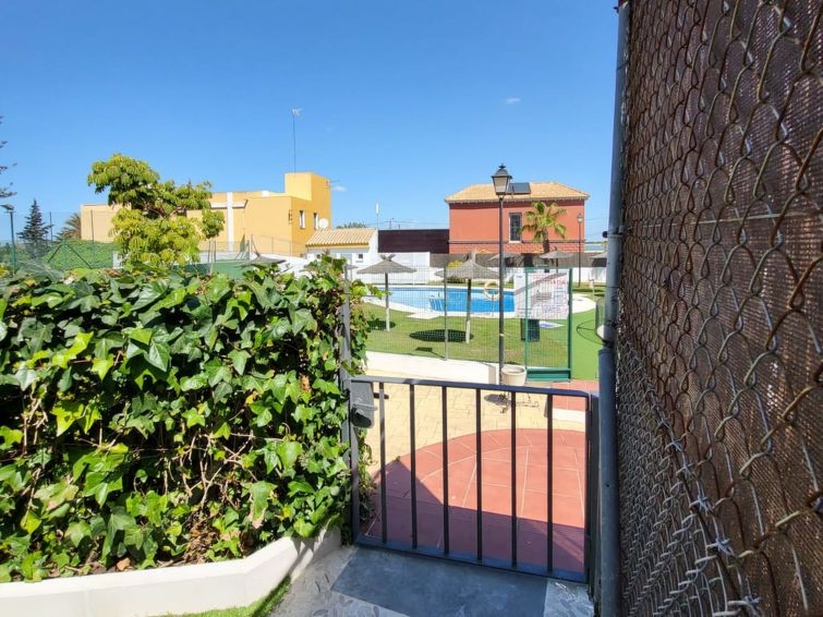 Residencia "Terrazas de Doñana", confortable. Lugar tranquilo, soleado, a 100 m del mar, a 100 m de la playa. Comunitario: jardín con césped, piscina redonda (160 cm de profundidad, Disponible por temporada: 01.Abr. - 30.Oct. horario piscina: 10:00-21:00). Piscina para niños, ducha exterior, tenis, aparcamiento junto a la casa, posibilidad de aparcamiento en la calle. Supermercado 1 km, restaurante 300 m, bar, café 200 m, playa de arena "Las Piletas".