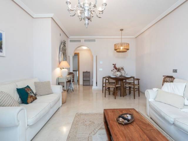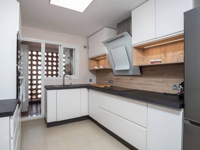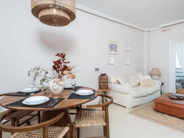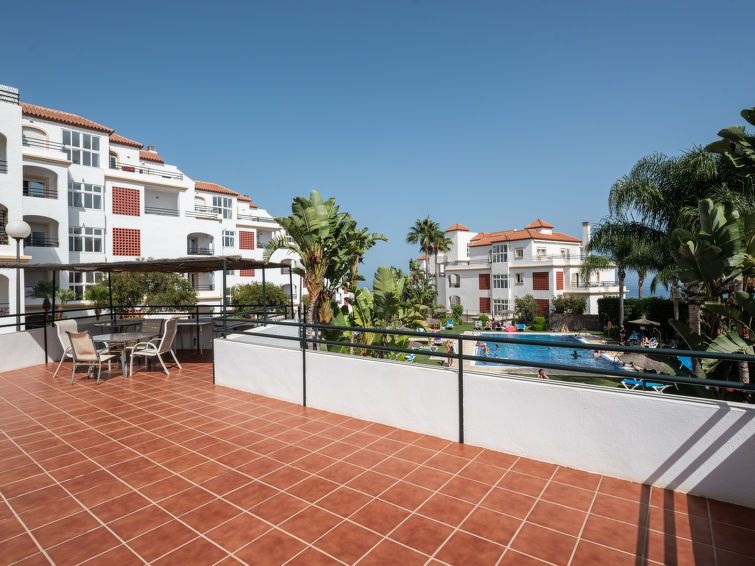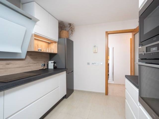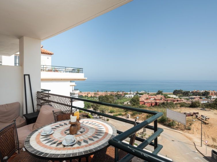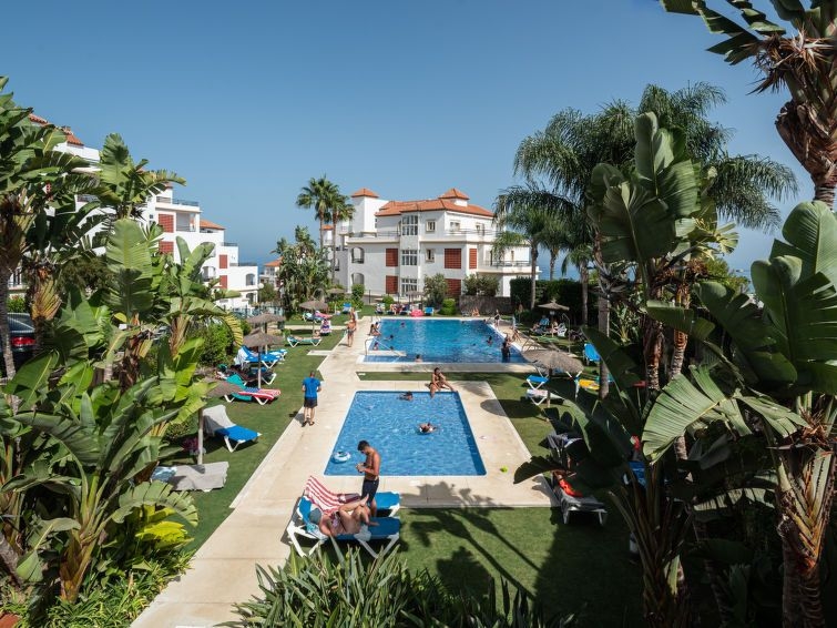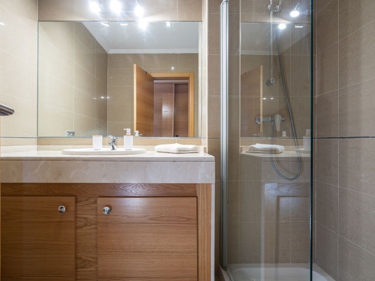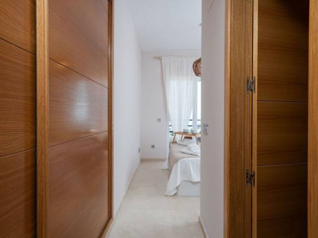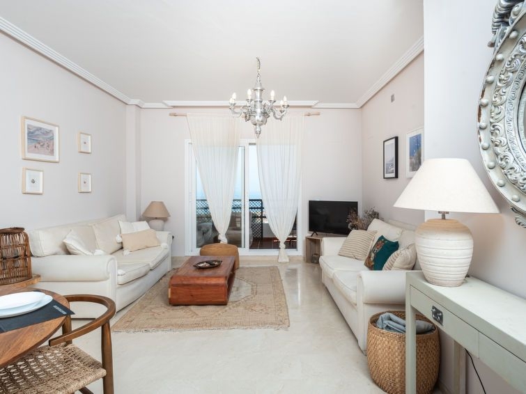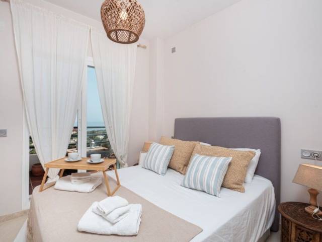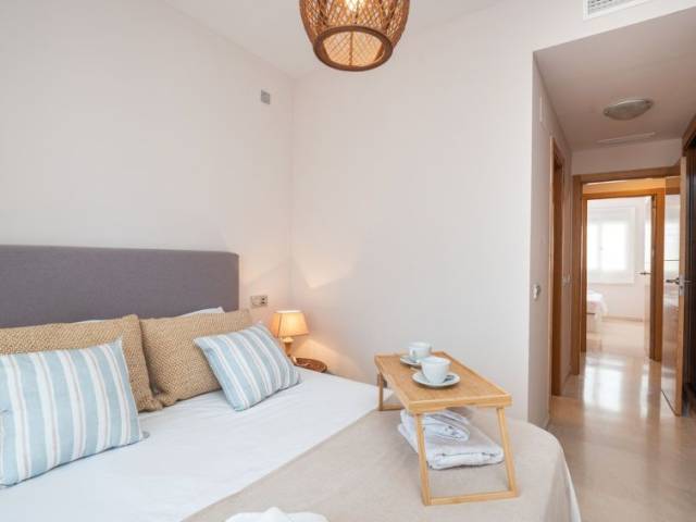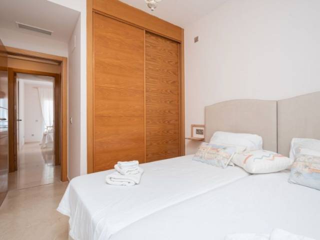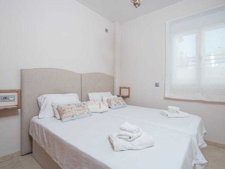 "Jardines del Mar Mediterráneo", apartamento de 3 estancias 100 m2 en el 3° piso. Vivienda adecuada para 4 adultos. Luminoso, con mobiliario funcional y confortable: salón-comedor 18 m2 con mesa de comedor, TV digital, aire acondicionado y bomba de calor, caliente. Salida a la terraza, orientación sur. 1 dorm. 18 m2 con 1 cama de matrimonio (150 cm, 200 cm de longitud), lavabo, ducha/WC, aire acondicionado y bomba de calor, caliente. Salida a la terraza, orientación sur. 1 dorm. 15 m2 con 2 camas dobles (90 cm, 190 cm de longitud), aire acondicionado y bomba de calor, caliente con lavabo y ducha/WC. Cocina (horno, lavavajillas, 3 Placas de inducción, hervidor de agua eléctrico, microondas, cafetera eléctrica) con aire acondicionado, bomba de calor, caliente y calentador. Salida al balcón acristalado. Suelo de piedra natural. Terraza. Muebles de terraza. El alojamiento dispone de: lavadora, plancha, trona, cuna hasta 3 años, secador de pelo. Internet (Wifi, gratis). Plaza de aparcamiento n. 9 (cubierto, 1 coche). A tener en cuenta: adecuado para familias. Apartamento para no fumadores. VFT/MA/62514