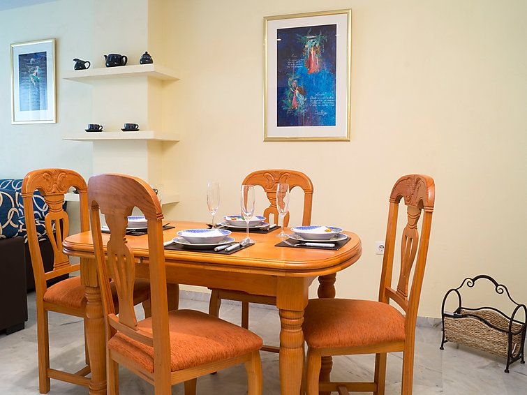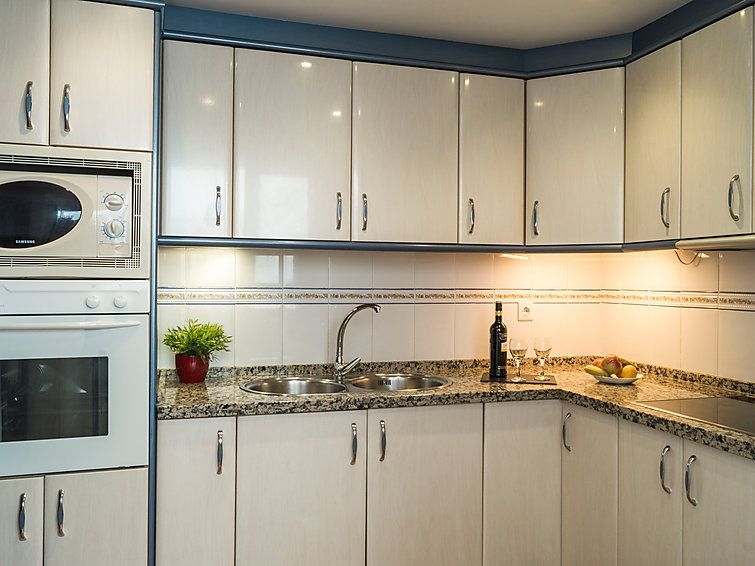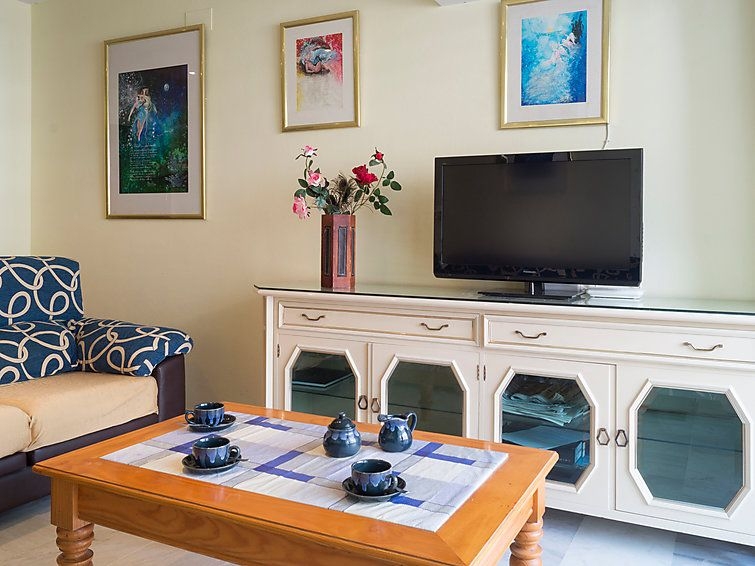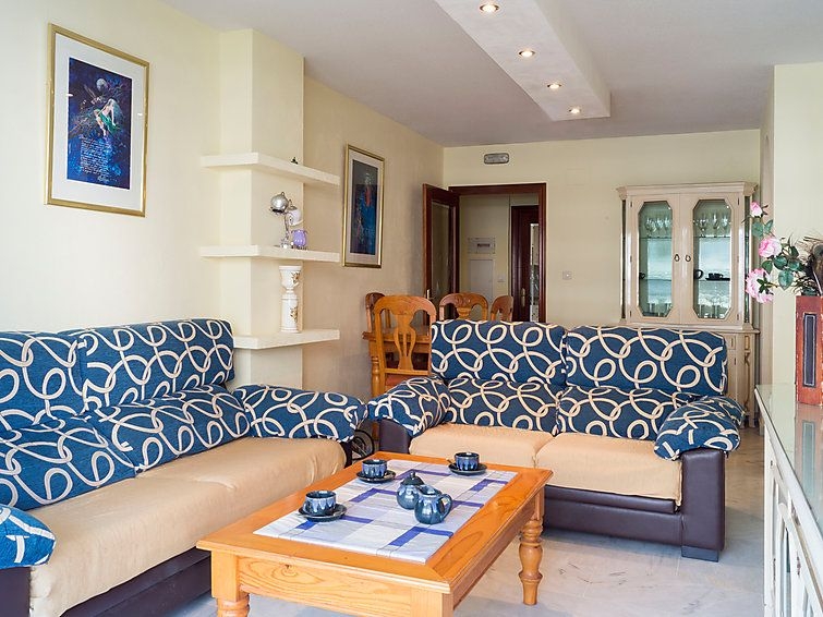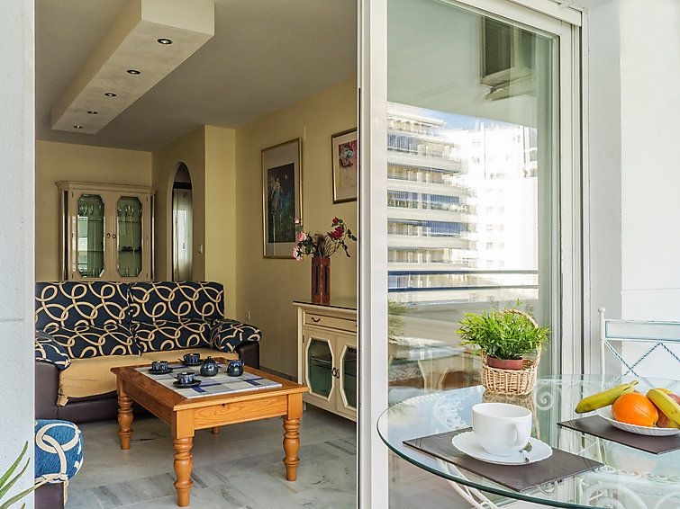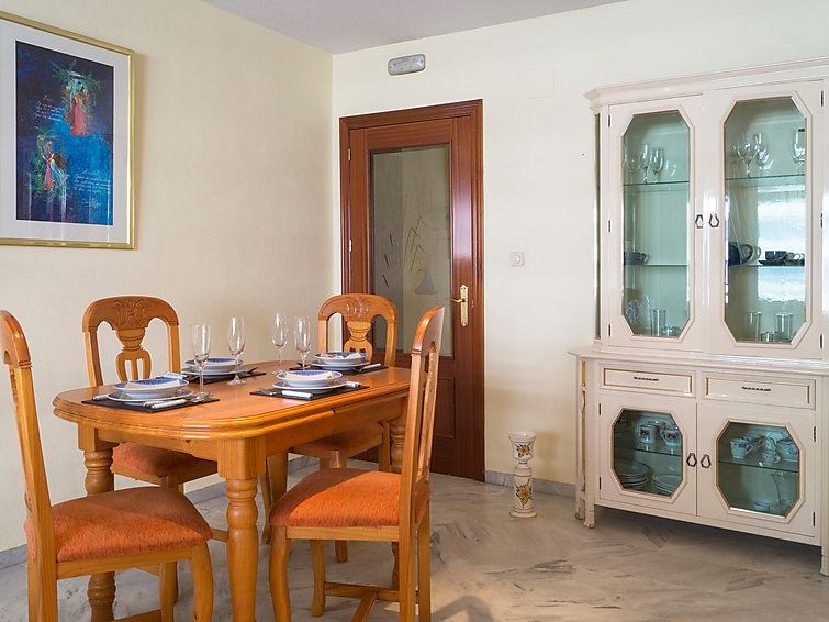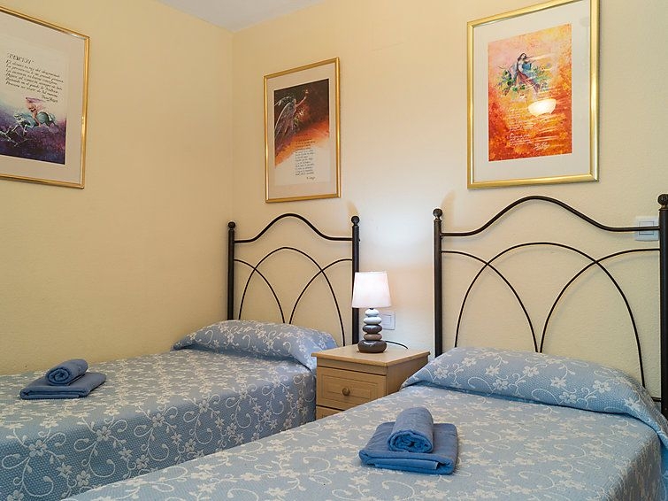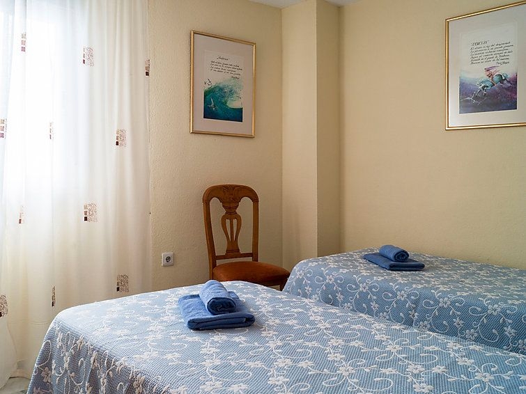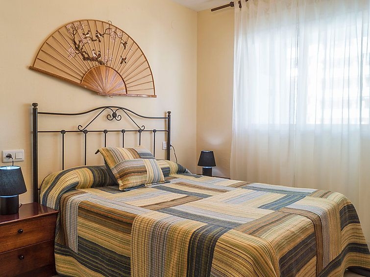 Apartamento de 3 estancias 80 m2 en el 4° piso. Con mobiliario sencillo y funcional: salón-comedor 20 m2 con TV, aire acondicionado y bomba de calor, caliente. 1 dorm. con 1 cama de matrimonio y ventilador. 1 dorm. con 2 camas (90 cm), ventilador. Cocina (4 fogones, horno, microondas, congelador). Baño/WC, WC separado. Calefacción eléctrica. Terraza 13 m2, orientación este y orientación sur. Muebles de terraza. Vista al mar, a la piscina y al jardín. El alojamiento dispone de: lavadora, cuna. Internet (Wifi, gratis). Garaje n. -3 Nº10. VFT/MA/12585