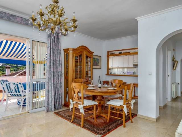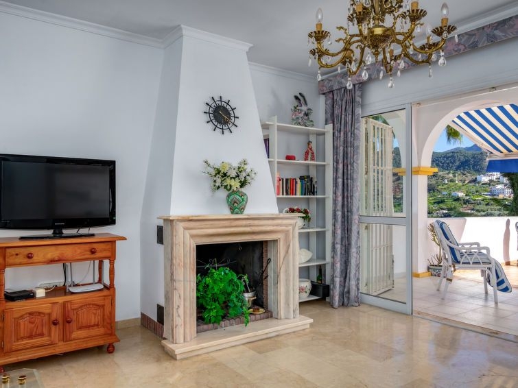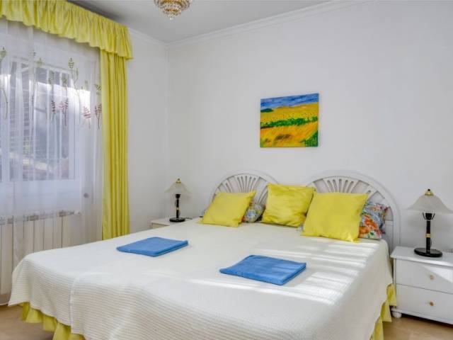 "El Chaparral", casa 3 estancias 100 m2. Con mobiliario funcional y confortable: salón-comedor. Salida a la terraza. 1 dorm. con 2 camas (90 cm, 200 cm de longitud). 1 dorm. con 1 cama de matrimonio (180 cm, 200 cm de longitud). Cocina (horno, lavavajillas, 4 placas de vitrocerámica, tostadora, microondas, congelador, cafetera eléctrica). Baño/WC, ducha/WC. Calefacción eléctrica. Terraza 70 m2. Muebles de terraza, barbacoa, tumbonas. Vista bonita al jardín y a la localidad. El alojamiento dispone de: lavadora, secadora, plancha, trona, cuna, secador de pelo. Internet (Wifi, gratis). Garaje. VTAR/MA/04134