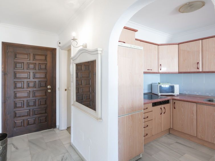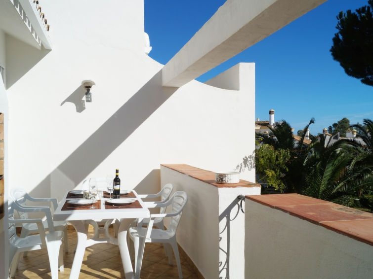 Casa de apartamentos "Monte Paraiso", agradable. En el centro de Calahonda, a 25 km del centro de Puerto Banus, a 15 km del centro de Marbella, lugar tranquilo, soleado, a 1 km del mar, a 1 km de la playa, orientación sureste. Comunitario: bonito jardín para relajarse, piscina (Disponible por temporada: 01.Jun. - 15.Sep.). Piscina con forma irregular. Ducha exterior, posibilidad de aparcamiento en la calle. Tienda 250 m, supermercado 500 m, restaurante, bar, panadería, café 250 m, parada de autobús 600 m, playa de arena 1 km. A tener en cuenta: vigilancia nocturna. Aeropuerto 65 km de la casa. "Monte Paraiso", apartamento de 3 estancias 66 m2 en 2 plantas, orientación sureste. Con mobiliario funcional y confortable: salón-comedor con chimenea, mesa de comedor, barra americana y TV digital. Salida a la terraza. Cocina (horno, 4 placas de vitrocerámica, tostadora, hervidor de agua eléctrico, microondas, congelador, cafetera eléctrica) con pasa-platos. WC separado. En planta inferior: 1 dorm. con 2 camas (90 cm, 190 cm de longitud), ventilador. Salida a la terraza-jardín. 1 dorm. con 1 cama de matrimonio (150 cm, 190 cm de longitud), ventilador. Salida a la terraza-jardín. Habitación de paso. Baño/WC. Terraza 15 m2, terraza 18 m2, cubierta. Muebles de terraza, tumbonas. Vista al paisaje. El alojamiento dispone de: lavadora, plancha, trona, cuna, secador de pelo. Internet (Wifi, gratis). A tener en cuenta: apartamento para no fumadores. 1 mascota / perro. VFT/MA/55331
