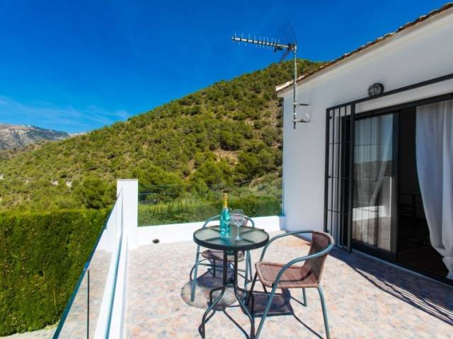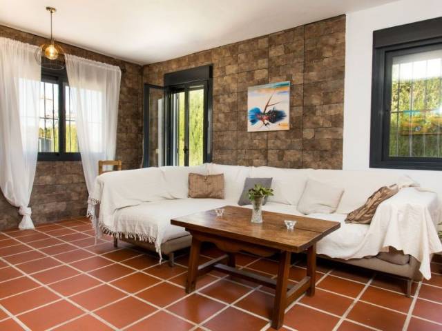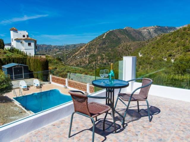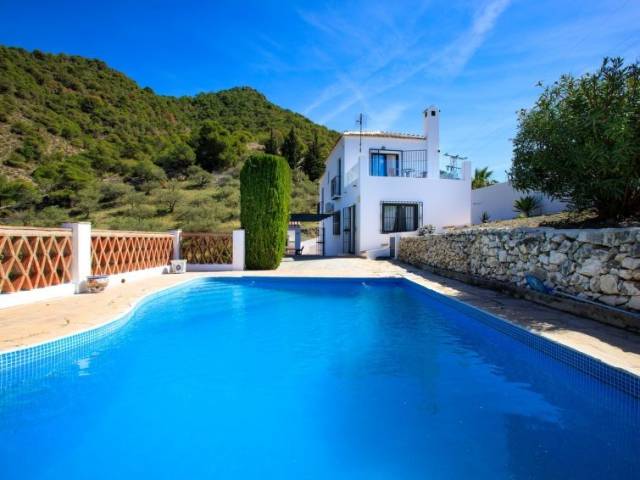 Paraje Natural a 2 km de Frigiliana: Casa en varios niveles "Andrea", amplia, rústica de 3 plantas, rodeada de árboles. Por debajo El Acebuchal, lugar aislado, soleado, a 7.1 km del mar, a 7.1 km de la playa, en el campo, orientación sur. Privado: jardín, terreno con árboles frutales, piscina (7 x 4 m, 100 - 180 cm de profundidad, Disponible por temporada: 13.Mar. - 31.Dic.). Ducha/WC en zona de piscina, terraza. En el inmueble: con TV, Wifi, solarium, aire acondicionado, lavadora. Aparcamiento (para 2 coches) junto a la casa. Supermercado 3 km, restaurante 3 km, playa de arena "Ferrara Torrox Costa" 9 km. Atracciones en los alrededores: El Acebuchal 822 m, Frigiliana 3 km, Nerja 7.1 km, Torrox 6 km, Cuevas de Nerja 8.1 km.