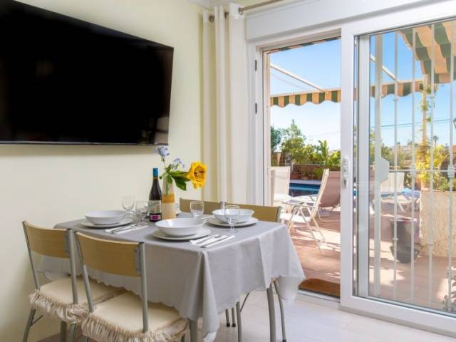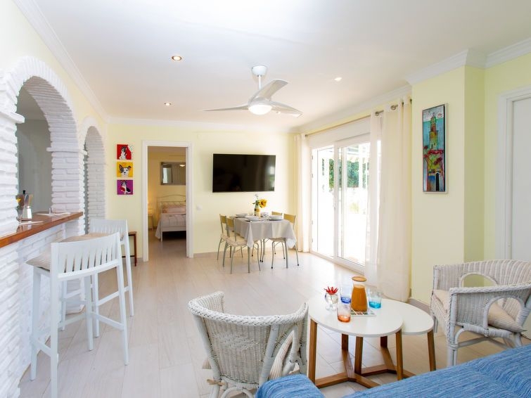 Caleta de Velez: Apartamento soleado y amplio a tan solo 36 km del aeropuerto de Málaga, a 10 minutos andando de la playa de Caleta de Velez, restaurantes, tiendas y campo de Golf. El animado pueblo de Torre del Mar está a unos 20 minutos andando por el paseo marítimo. Aun así la casa está en una zona tranquila y residencial. Muy cerca de la casa hay un puerto deportivo donde se pueden realizar todo tipo de actividades náuticas. Cerca de la casa hay un parque acuático, centro comercial y zona de ocio. Casa "Apartment with private pool", bonita, agradable, confortable. Lugar soleado area residencial (villas), a 900 m del mar, a 900 m de la playa. Privado: patio, piscina (4 x 7 m, 100 - 200 cm de profundidad, Disponible por temporada: 01.Ene. - 31.Dic.). Ducha exterior, terraza, muebles de jardín, aparcamiento junto a la casa. Tienda, supermercado 700 m, centro comercial 4 km, restaurante, bar 900 m, panadería 700 m, café, zona peatonal, bar al aire libre 900 m, parada de autobús "Caleta de Velez" 800 m, estación de tren "Málaga" 36 km, ferry "Málaga" 31 km, playa de arena "Caleta de Velez" 900 m. Puerto deportivo 1.4 km, puerto para yates 1.4 km, campo de golf (18 hoyos) 350 m, escuela de surf 1.4 km, escuela de vela 1.4 km. Atracciones en los alrededores: Frigiliana 16 km, Competa 19 km, Málaga 36 km, Granada 63 km, Almuñecar 21 km, Nerja 16 km. Zonas de esquí populares fácilmente accesibles: Sierra Nevada. Zona de senderismo Sierra Almijara, Sierra Tejeda, Caminito del Rey. El propietario no acepta grupos de adolescentes/jóvenes. A tener en cuenta: carga y descarga de equipaje posible en la casa de vacaciones. "Apartment with private pool", casa 3 estancias 80 m2, orientación oeste. Espacioso y luminoso, con mobiliario sencillo y funcional: salón-comedor con TV digital, calefacción eléctrica y estufa eléctrica. Salida a la terraza, a la piscina. 1 dorm. con 1 cama de matrimonio (180 cm, 200 cm de longitud), ducha/WC y estufa eléctrica. 1 dorm. con 1 cama (90 cm, 190 cm de longitud), 1 cama de matrimonio (160 cm, 200 cm de longitud), ducha/WC, calefacción eléctrica y estufa eléctrica. Cocina abierta (horno, lavavajillas, 3 placas de vitrocerámica, tostadora, hervidor de agua eléctrico, microondas, cafetera eléctrica). Muebles de terraza, barbacoa, tumbonas. Vista lejana lateral al mar. El alojamiento dispone de: lavadora, plancha, cuna, secador de pelo. Internet (Wifi, gratis). El apartamento es parte de una gran casa. Tiene su propia entrada independiente, los huéspedes tienen uso exclusivo de la piscina y terraza privada. Tiene un amplio soleado salón/comedor con smart tv, buena conexión a internet, cocina grande con barra americana, dos dormitorios muy grandes cada uno con su baño ensuite, radiadores eléctricos para las noches de invierno. Al estar en la misma planta que la piscina y soleada terraza hace que el apartamento sea un alojamiento ideal. VFT/MA/53418