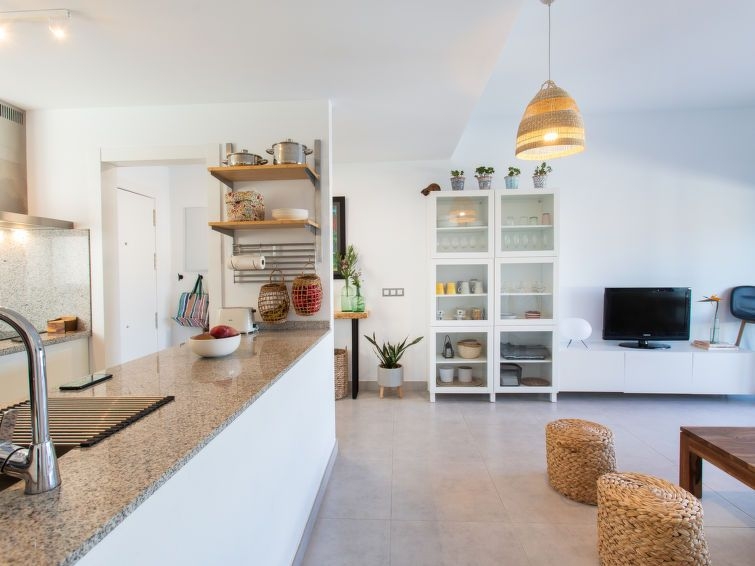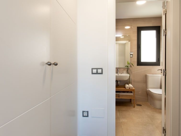 Torre del Mar: Casa de apartamentos "Atico Maroma", moderno, bonito, confortable de 5 plantas. En el centro de Torre del Mar, a 500 m del mar, a 500 m de la playa, orientación norte. Comunitario: piscina (15 x 7 m, 35 - 150 cm de profundidad, Disponible por temporada: 01.Ene. - 31.Dic.). WC en zona de piscina, ducha exterior. En el inmueble: ascensor, aire acondicionado, lavadora. Aparcamiento n. 14 (cubierto), garaje individual. Tienda, tienda de comestibles 300 m, centro comercial 1.5 km, restaurante, panadería, café 300 m, zona peatonal 700 m, playa de arena 500 m. Puerto deportivo 2 km, puerto para yates 2 km, campo de golf (18 hoyos) 4 km, escuela de vela 700 m. Atracciones en los alrededores: Nerja, La Viñuela, Periana, Malaga, Granada, Frigiliana. Zonas de esquí populares fácilmente accesibles: Sierra Nevada. Zona de senderismo Sierra Tejeda, Sierra Almijara. A tener en cuenta: equipamiento para bebés (incluido). El propietario no acepta grupos de adolescentes/jóvenes. Carga y descarga de equipaje posible en la casa de vacaciones. La propiedad con ref: ES5460.1.1 está situada en la misma parcela. "Maroma", ático de 3 estancias 70 m2, en planta superior. Espacioso y luminoso, con mobiliario muy confortable y bonito: salón-comedor con TV digital, aire acondicionado y bomba de calor, caliente. Salida a la terraza. 1 dorm. con 2 camas (90 cm, 190 cm de longitud), aire acondicionado y bomba de calor, caliente. 1 dorm. con 1 cama de matrimonio (150 cm, 190 cm de longitud), ducha/WC, aire acondicionado y bomba de calor, caliente. Cocina abierta (horno, lavavajillas, 4 placas de vitrocerámica, tostadora, hervidor de agua eléctrico, microondas, congelador, grill, cafetera eléctrica) con barra americana. Salida a la terraza. Ducha/WC. Terraza grande. Muebles de terraza, tumbonas. Muy bonita a las montañas. El alojamiento dispone de: lavadora, plancha, trona, cuna, secador de pelo. Internet (Wifi, gratis). Plaza de aparcamiento n. 14. VFT/MA/47705